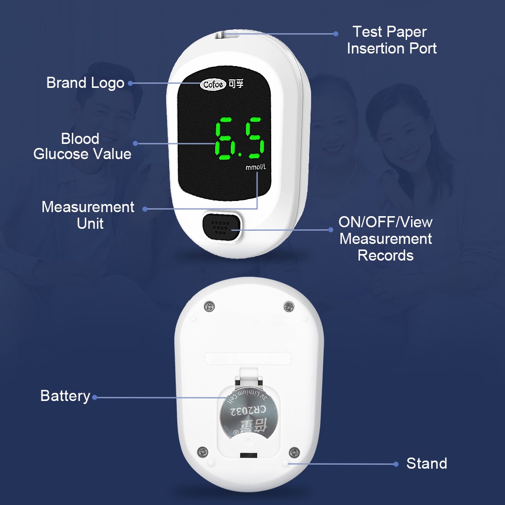Cofoe Yice Blood Glucose Meter Glucometer Intelligent Diabetes Blood Sugar Test Kit Monitor 50pcs Test Strips+50pcs Lancets