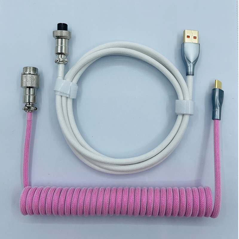 Coiled Cable for Gaming Keyboard, Double-Sleeved Mechanical Keyboard Cable with Detachable Metal Aviator Mini XLR, 1.5M USB-A to USB-C