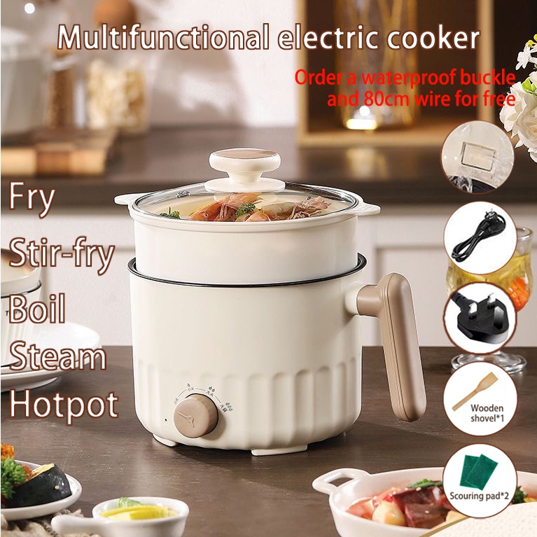 1.8L Mini Multi Cooker with Steam Tray, Personal Steamboat, Noodle Cooker