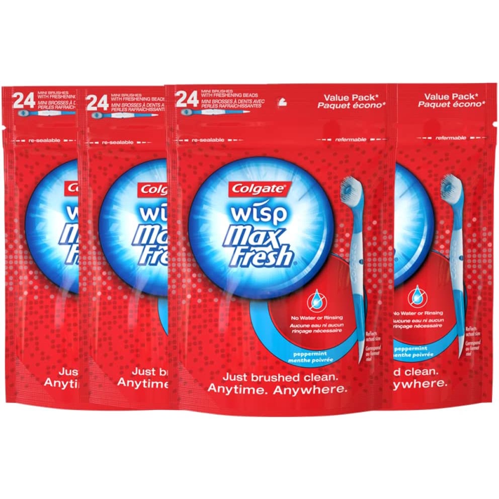Colgate Max Fresh Wisp Disposable Mini Toothbrush, Peppermint - 24 Count (1 pack)