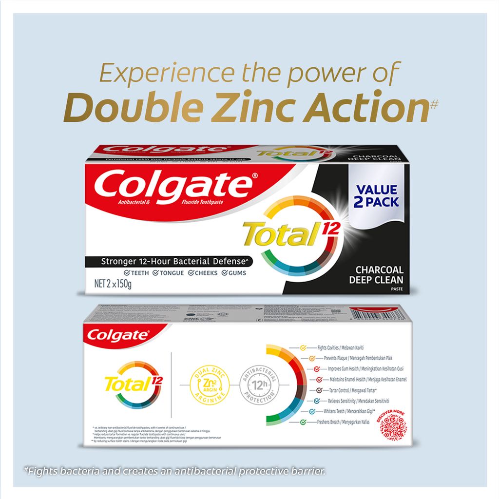 Colgate Total Charcoal Deep Clean Antibacterial Toothpaste Valuepack 150g x 2