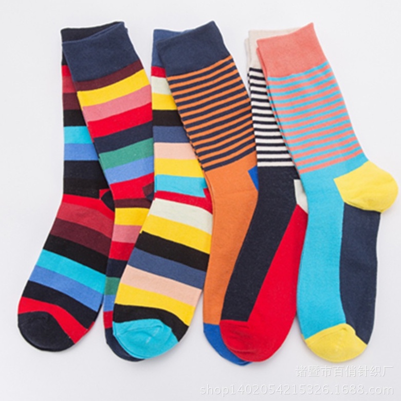 Colorful men's socks geometric plaid stripes classic happy business casual socks men