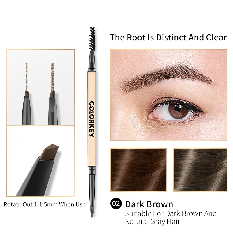 Colorkey Eyebrow Pencil Dual-ended Triangle Chiseled Waterproof Long- Lasting Eyebrow Makeup Pen 0.07g
