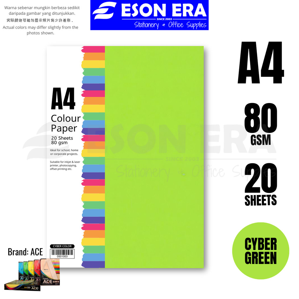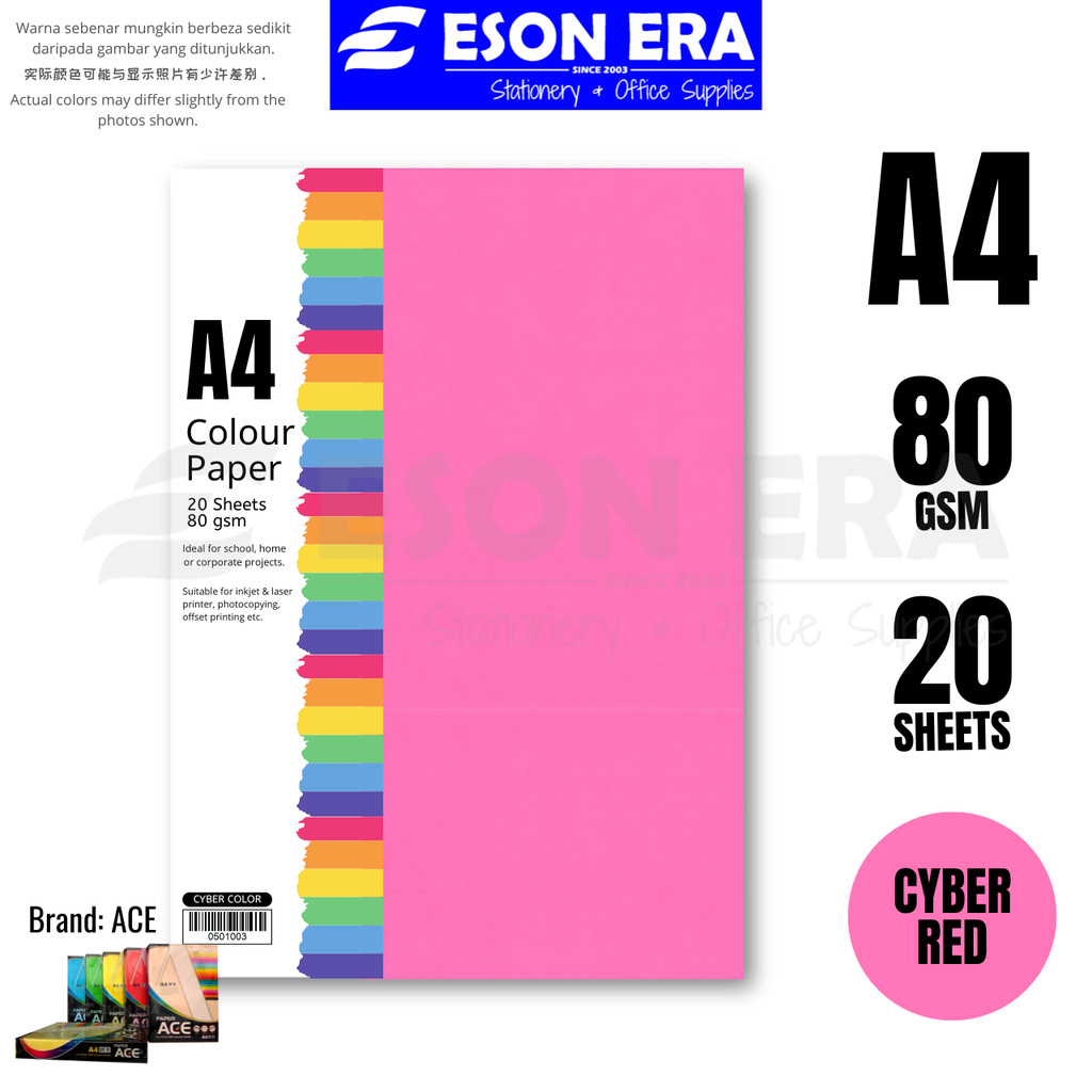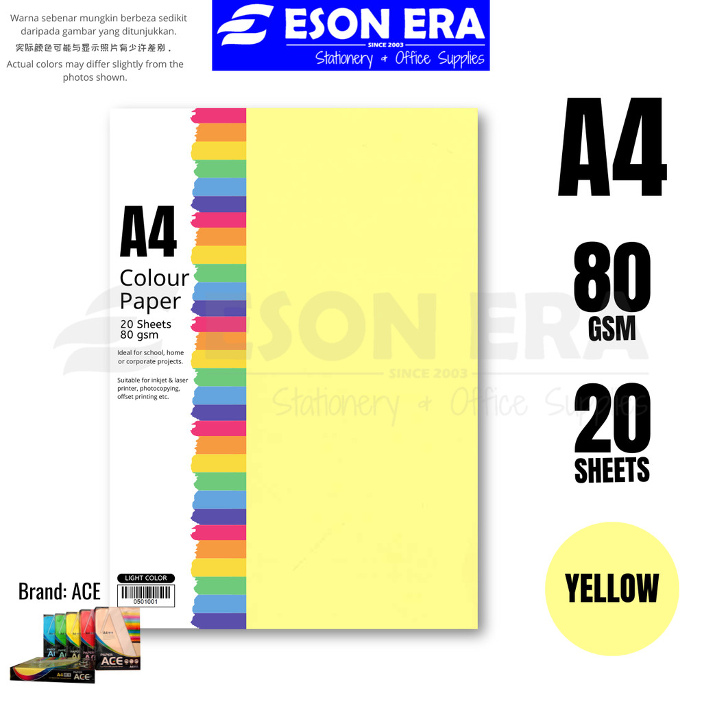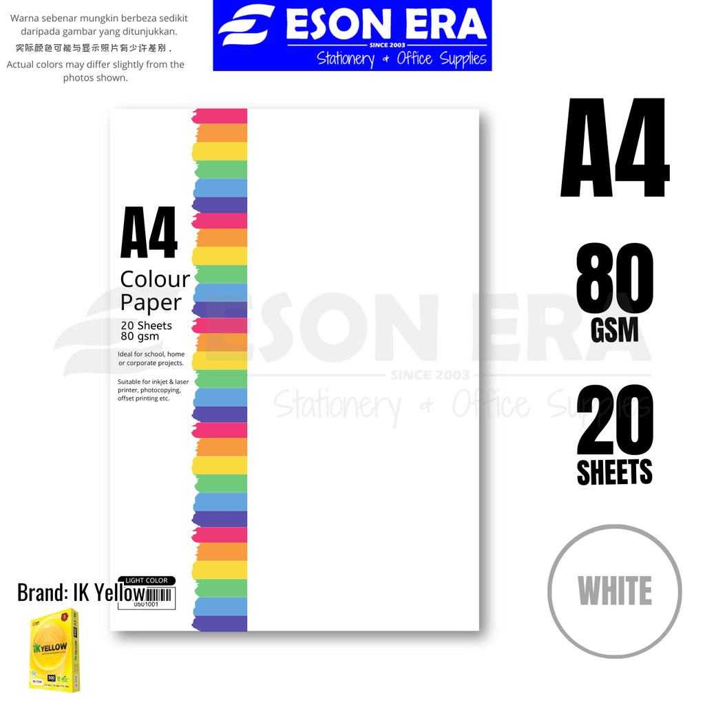 Colour Paper 80gsm A4 20sheets / Pack Kertas Warna