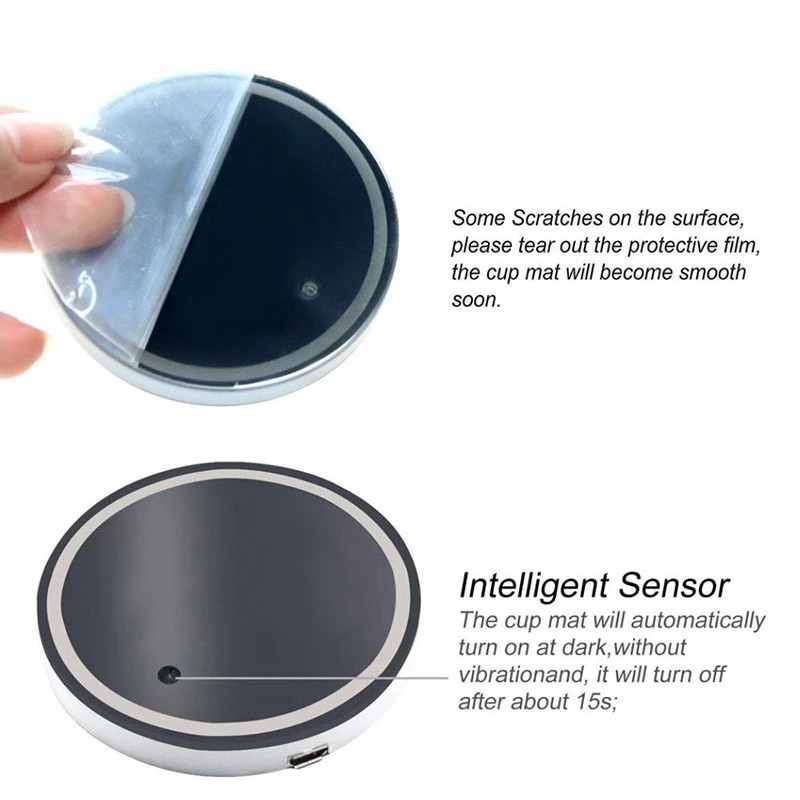 Colourful Light-up Coaster with Charging Cable / Anti-slip Colour-chanGing Car LED Coaster / Three Modes of USB Charging Coaster / Car Ambient Light