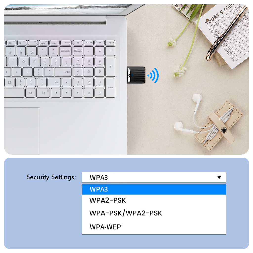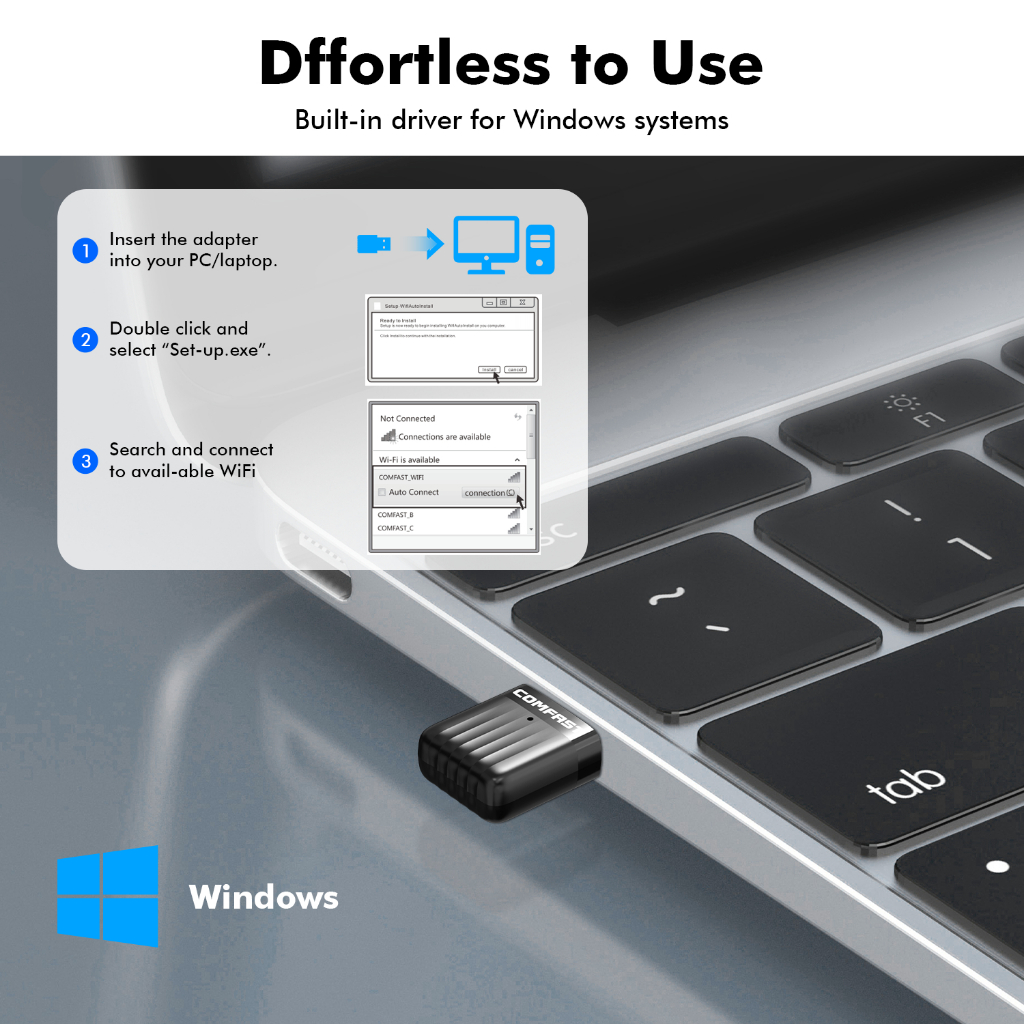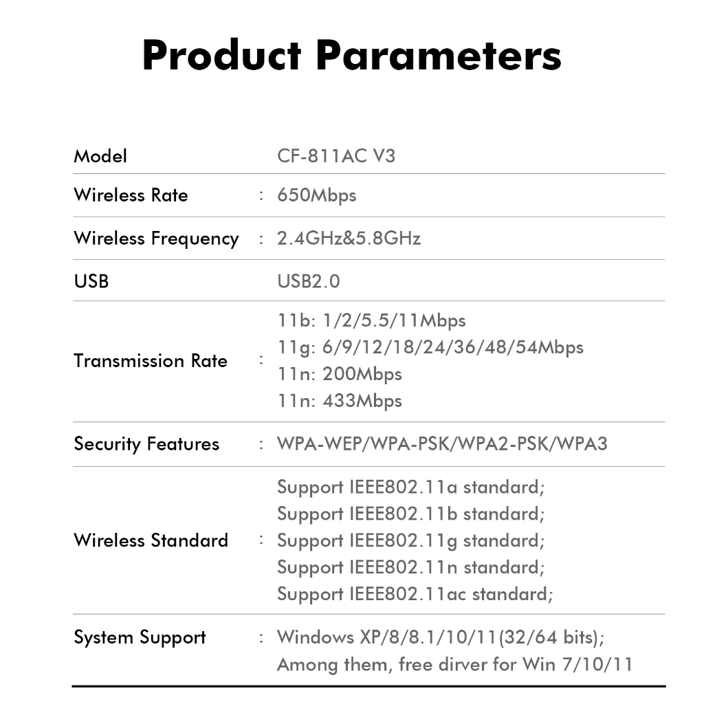 Comfast Mini USB WiFi Adapter 650Mbps 2.4&5GHz Dual Band WiFi Dongle Free-Drive Wireless Computer Receiver WPA3 Wi Fi Recevier Hot Spot CF-811ACV3