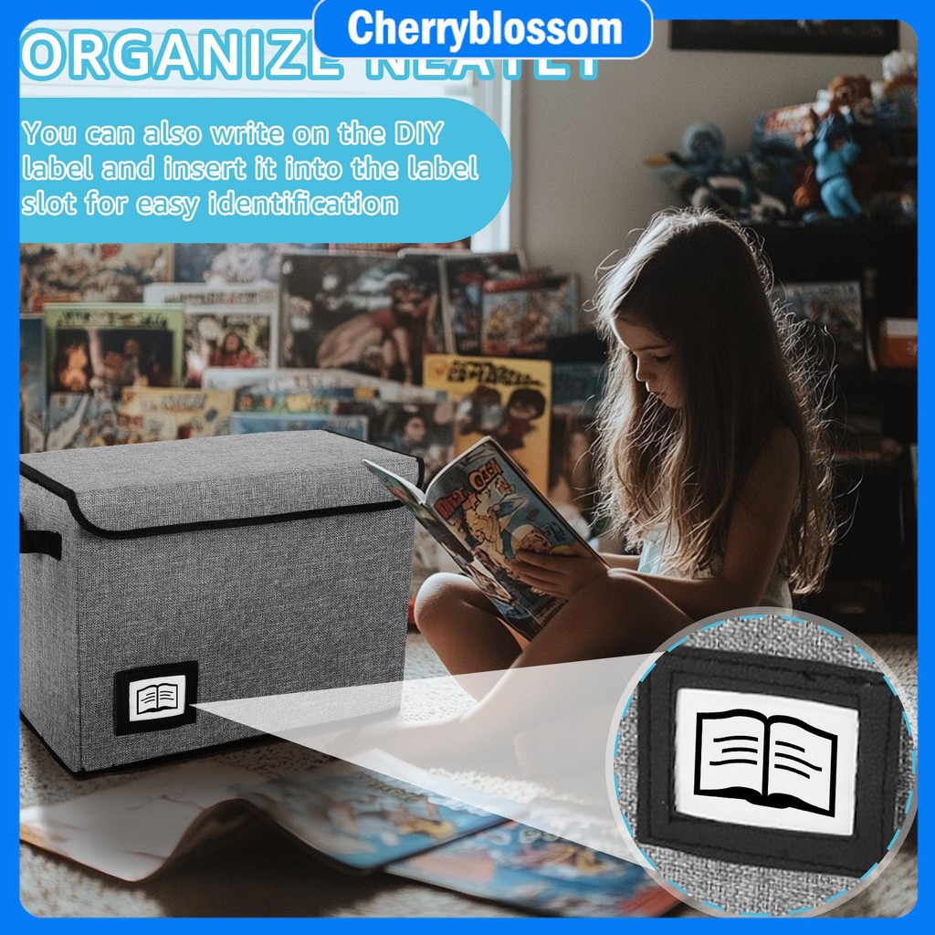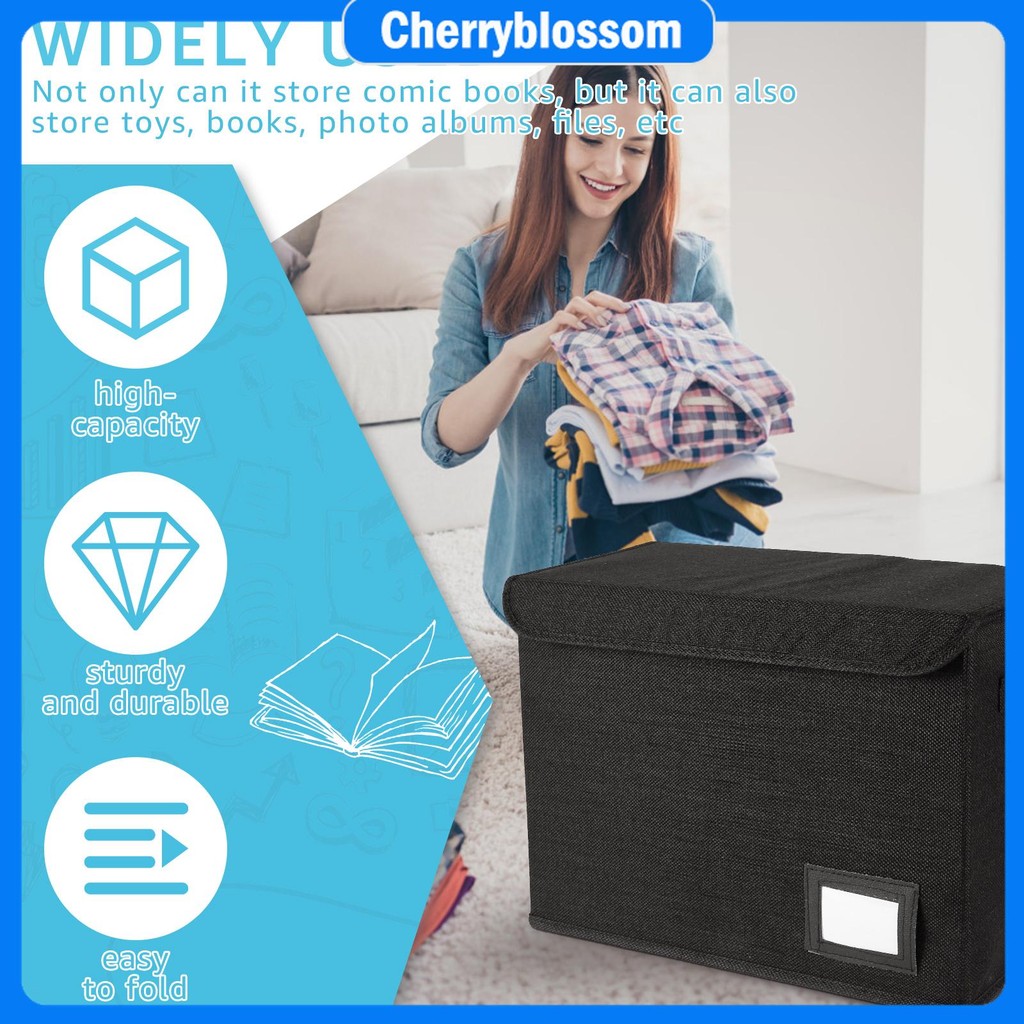 Comic Book Storage Box Foldable Comic Book Bin Washable Integrated Comic Book Box Comic Book Organizer with Handle Enclosed Lid SHOPCYC2030