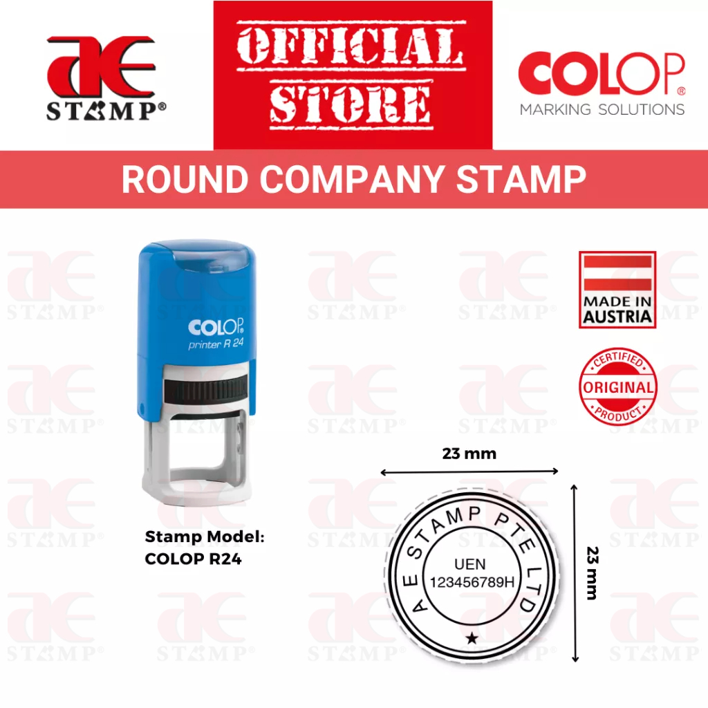 Company Stamp | Customised Round Corporate UEN Company Address Stamp | Personalised Self Ink Pre Ink Rubber Stamp Chop