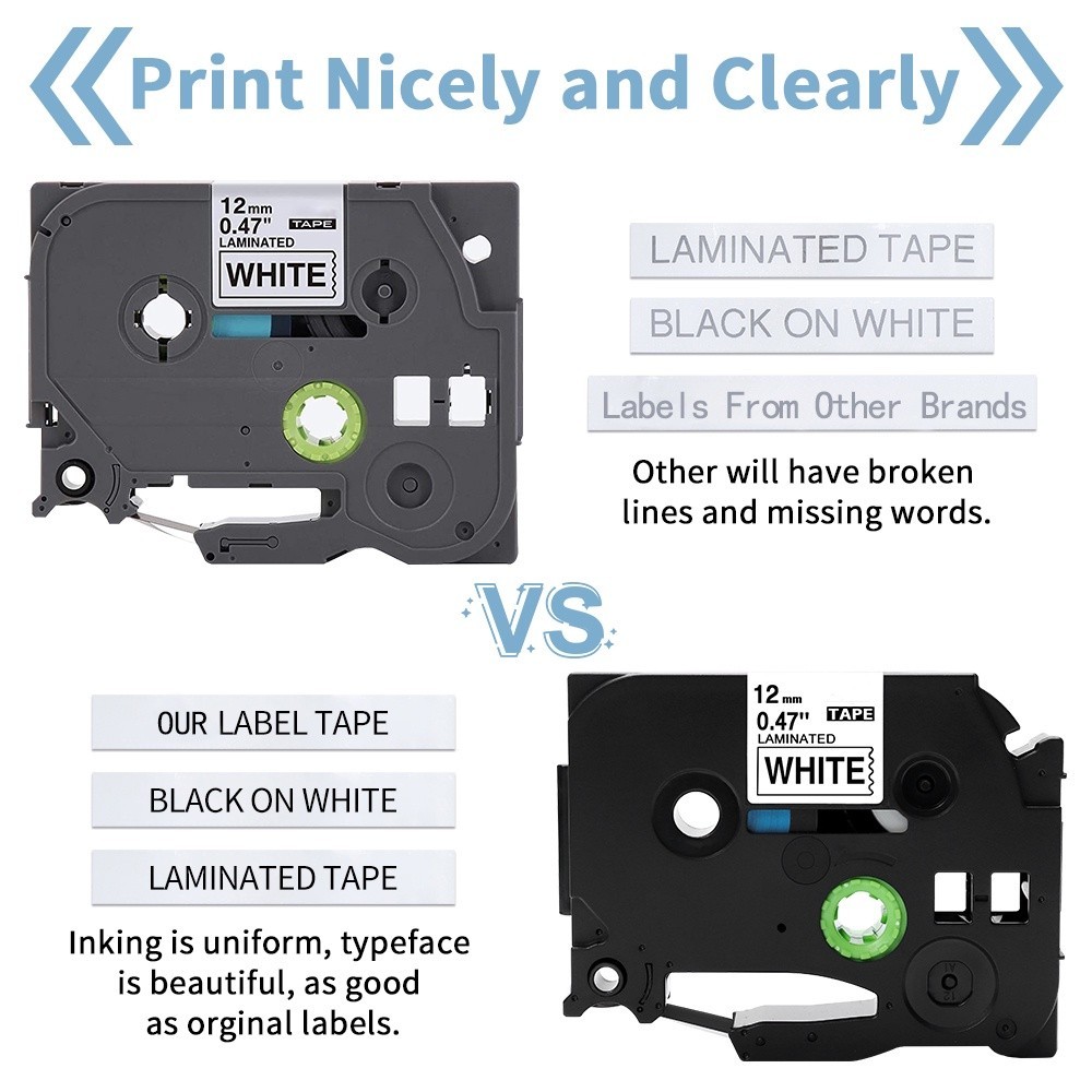 Compatible Tze Tape 6/9/12mm tze231 tze221 tze211 Compatible Brother tape TZE-231 Laminated Label Tape Strong Adhesive Refill Tape for Brother Label Maker P-Touch PTH110