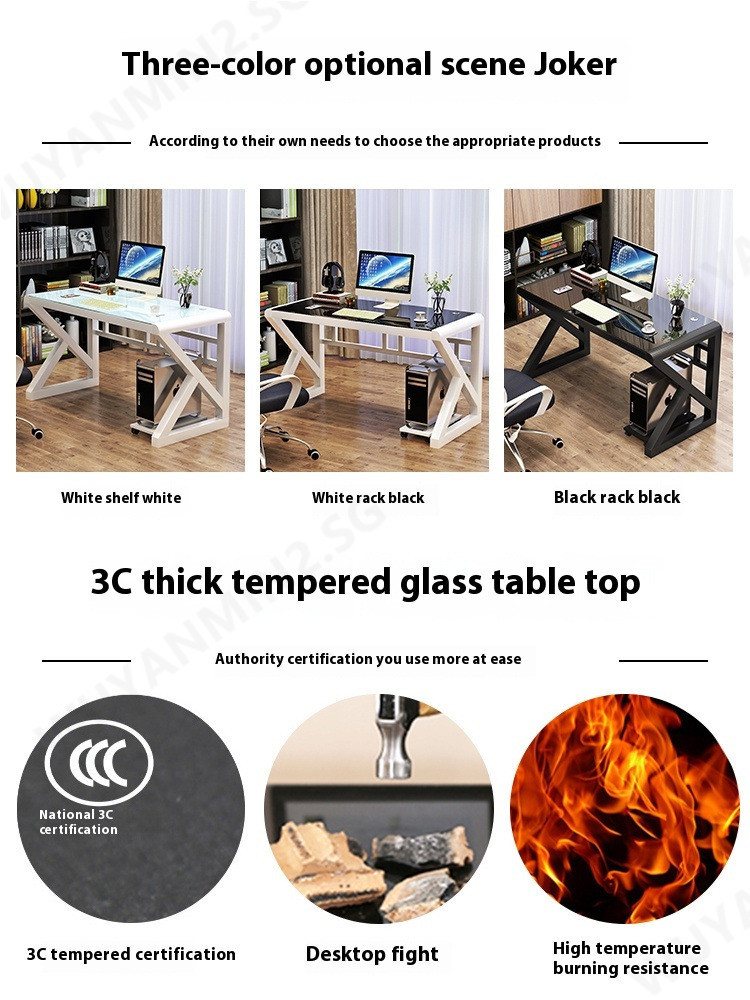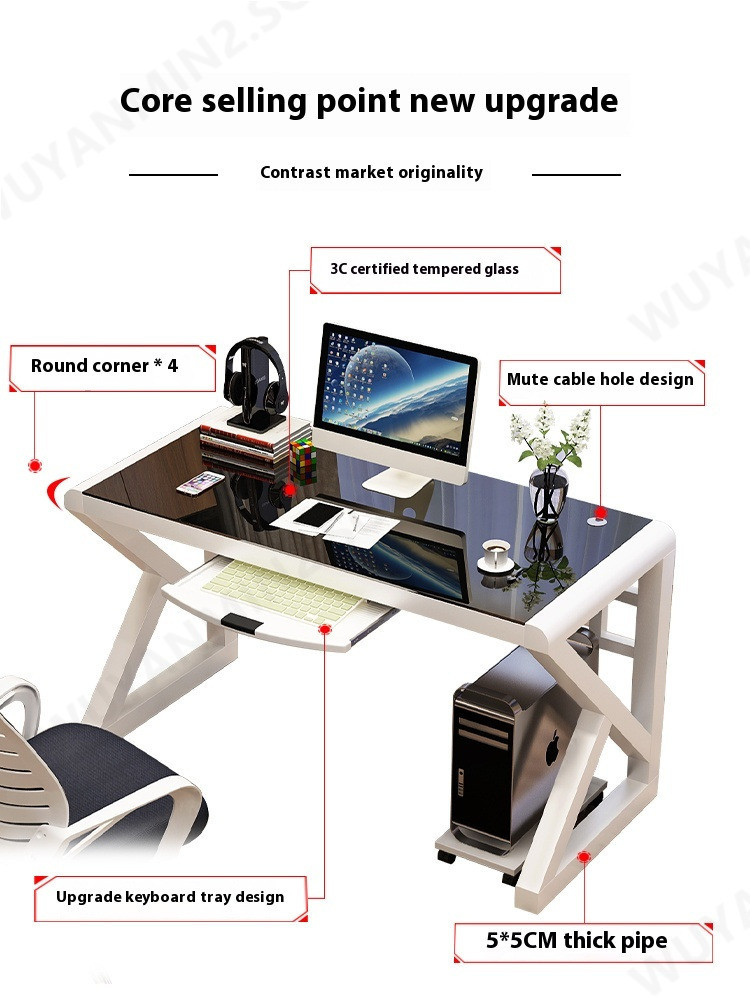 Computer Table Simple Modern Study Table Office Desk Simple Student Study Desk Tempered Glass Computer Table