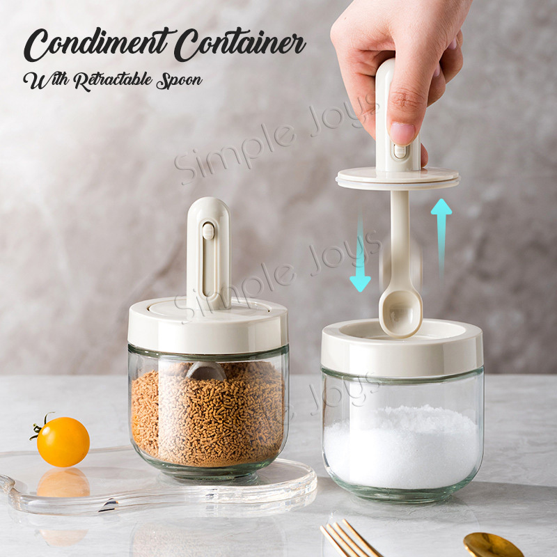 Condiment Container Glass Spice Seasoning Jars with Retractable Spoon