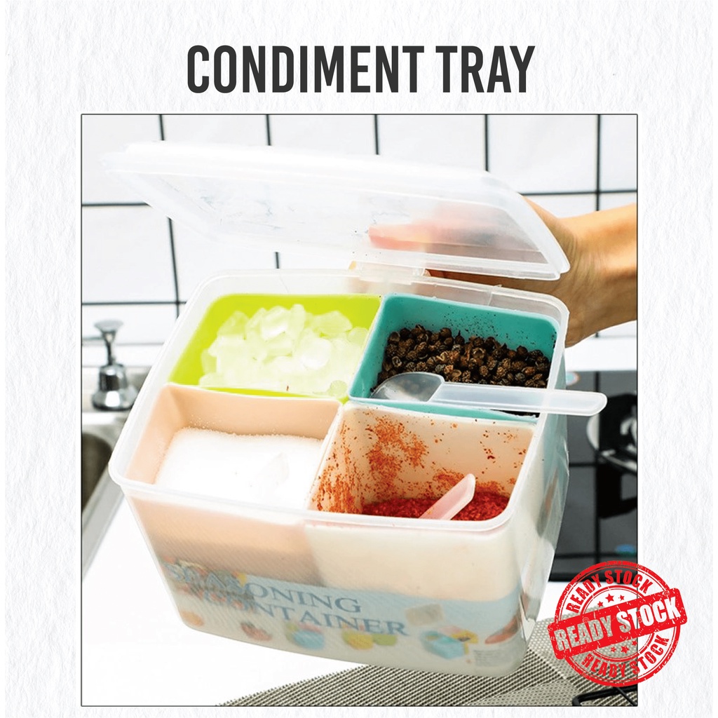 Condiment Container Salt Container Seasoning Container Spice Container with Removable 2 /3 / 4 Compartments