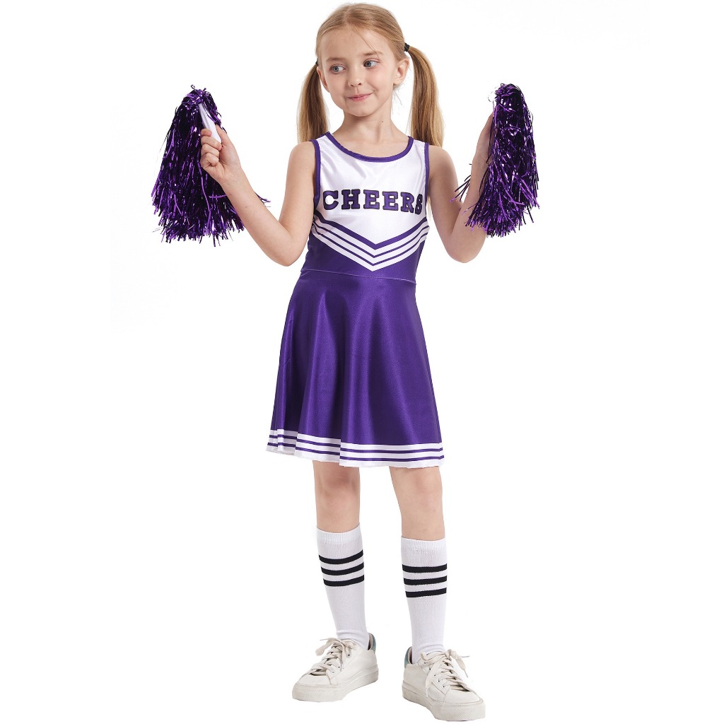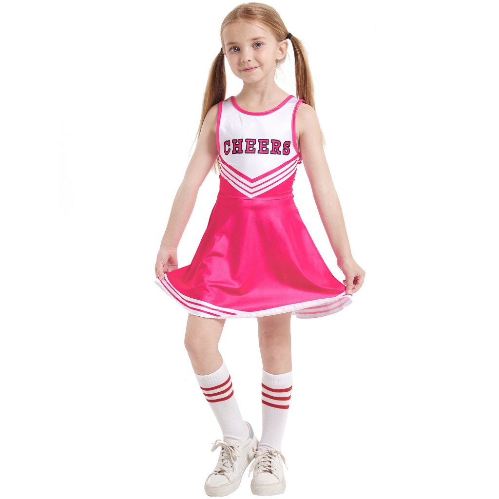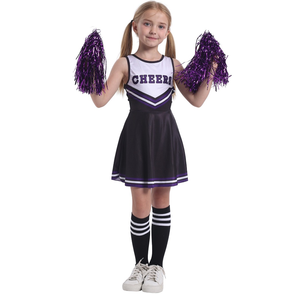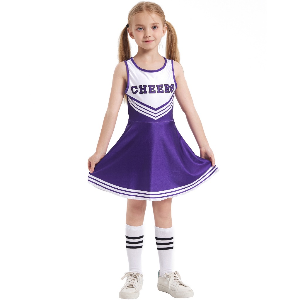 Congme 3 pcs Set Girls Cheerleader Outfits Cheer Skirts Stretchy Team Uniforms for School Events Performances Cheerleading Activities