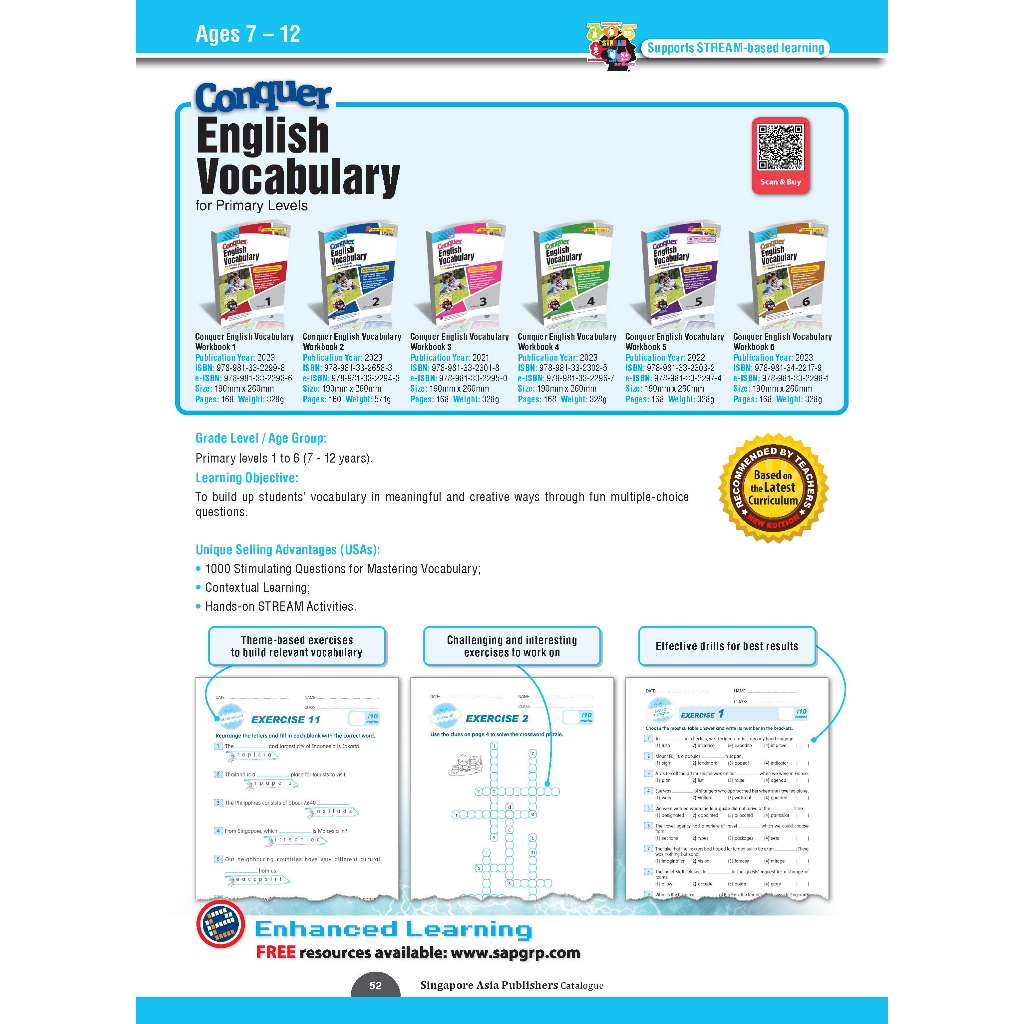 Conquer English Vocabulary Workbook 1-6 | Skill-based | Primary School English Assessment Books - SAP