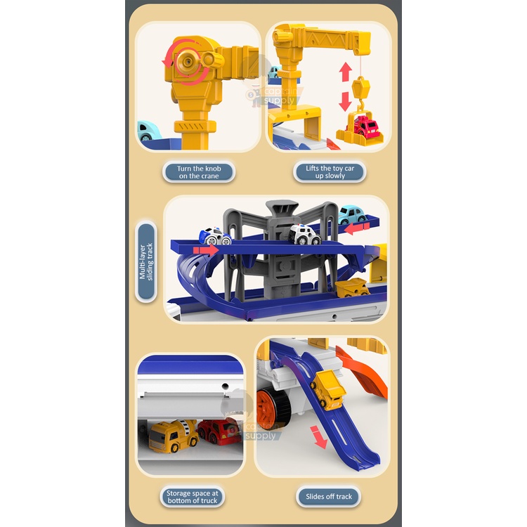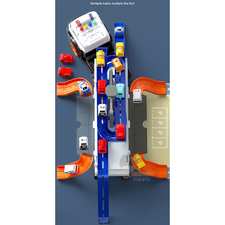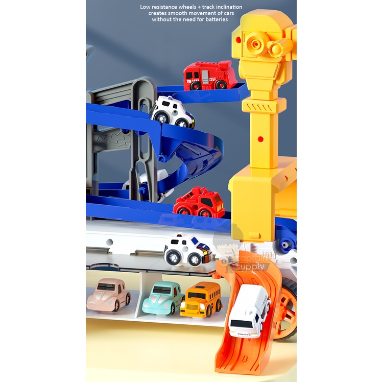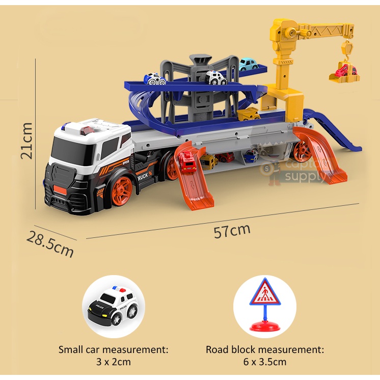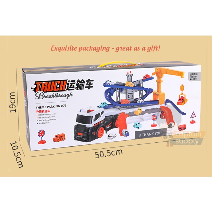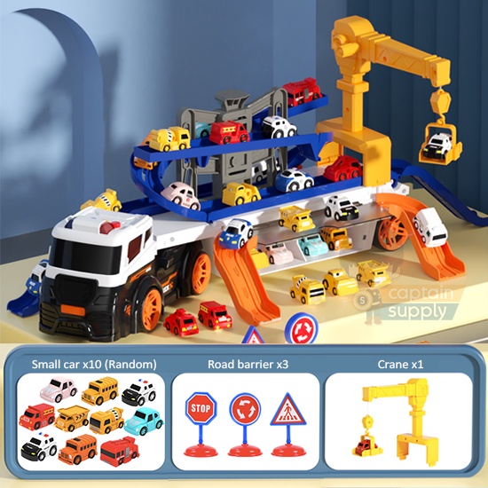 Container Truck Toy with Sliding Tracks (and 10 Small Cars)