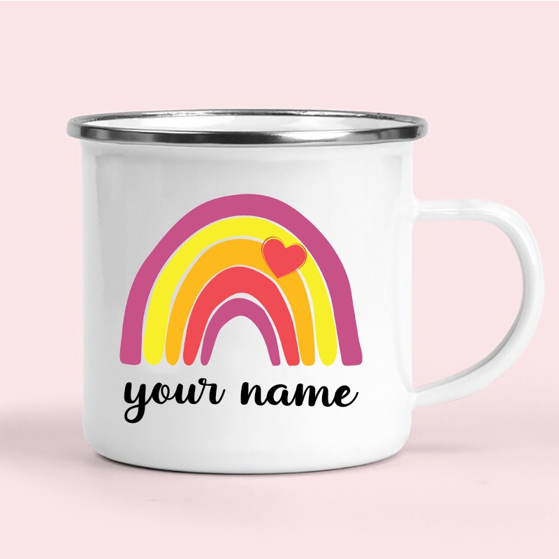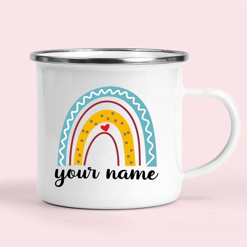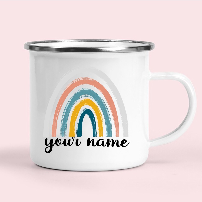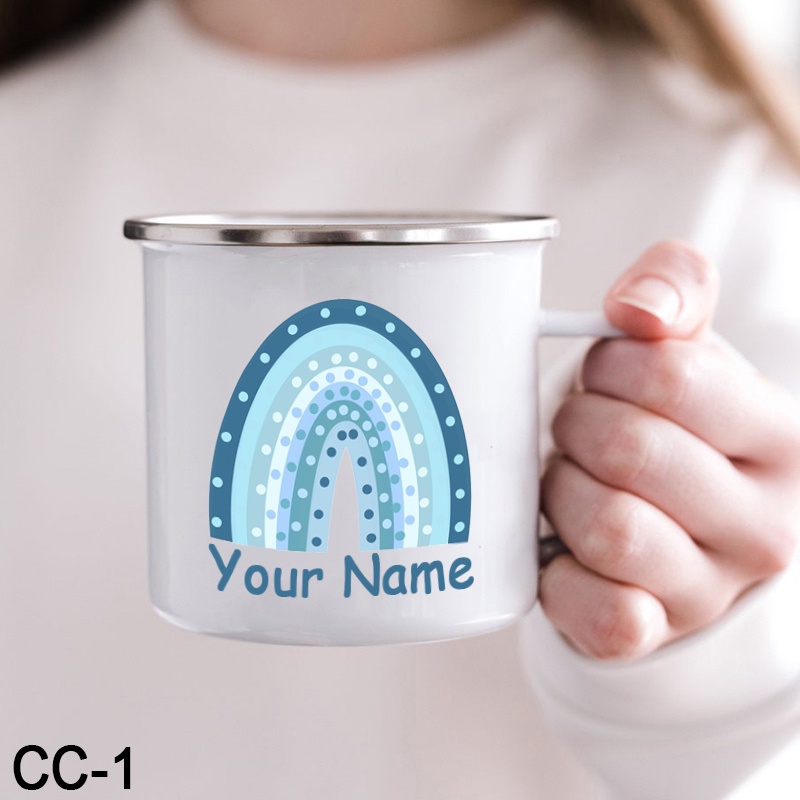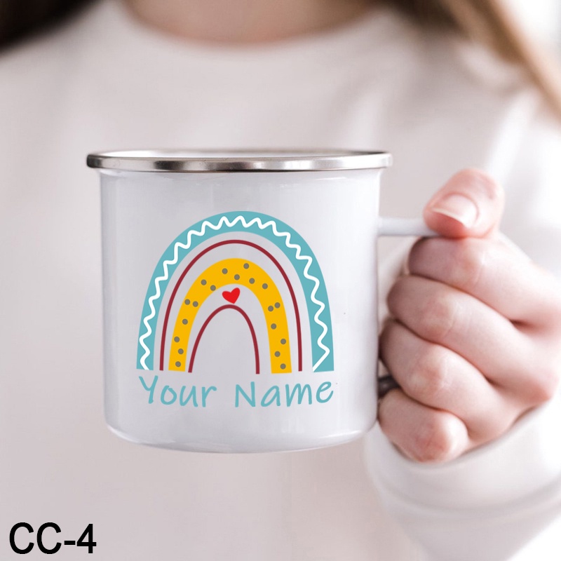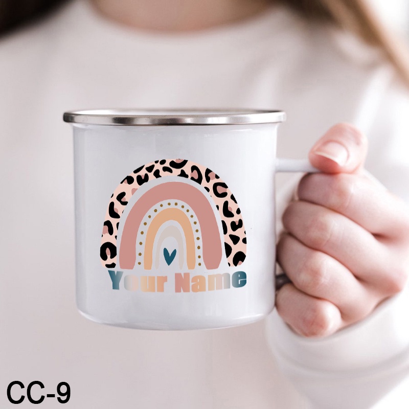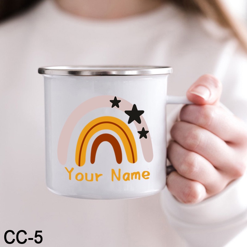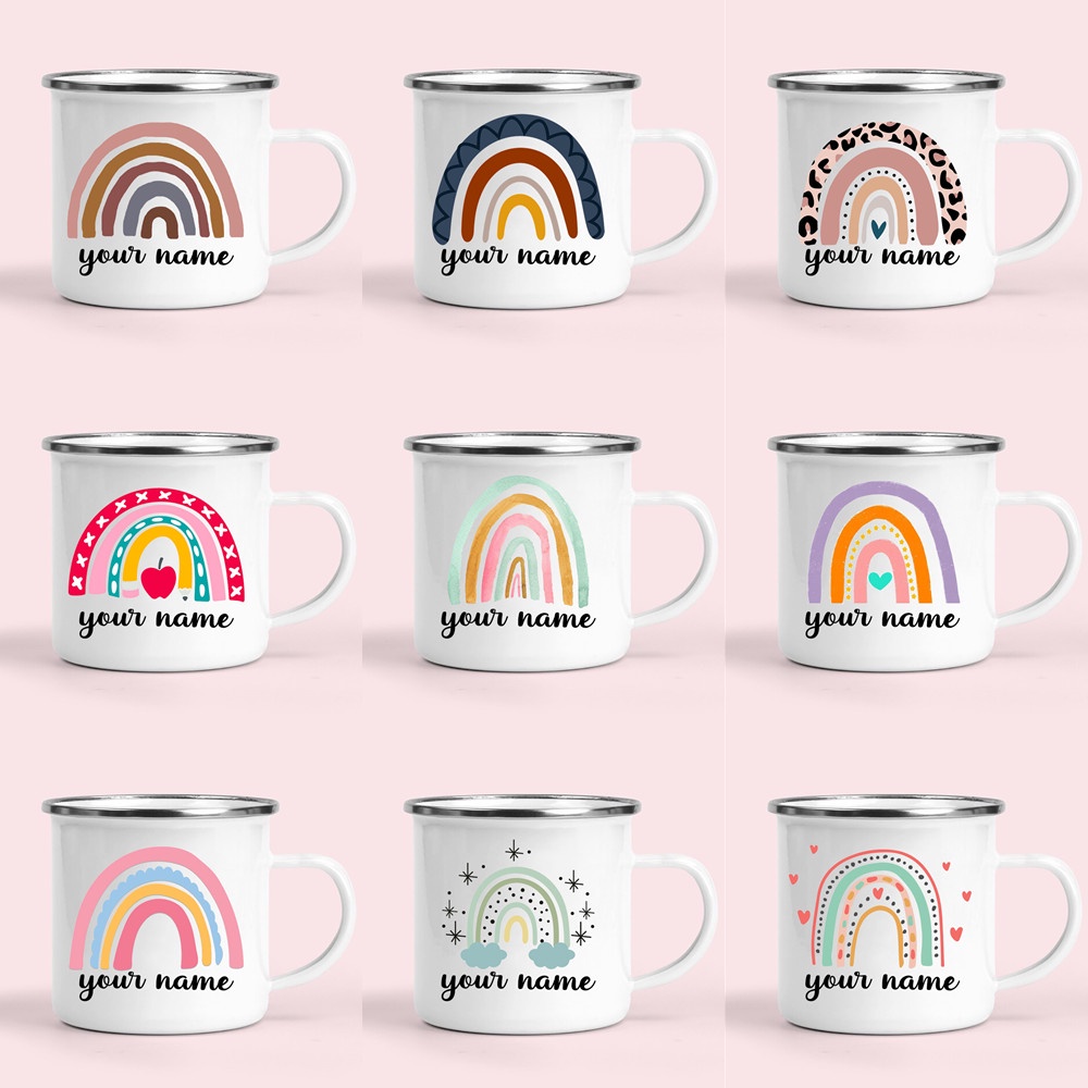 Free Add Name Rainbow Mugs Name Print Enamel Cups Coffee Mugs Handle Drinkware Mug