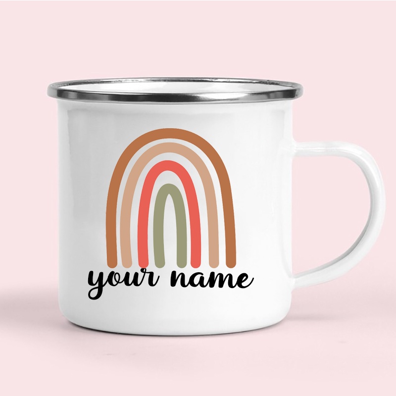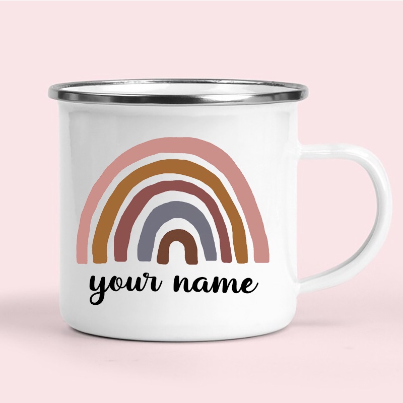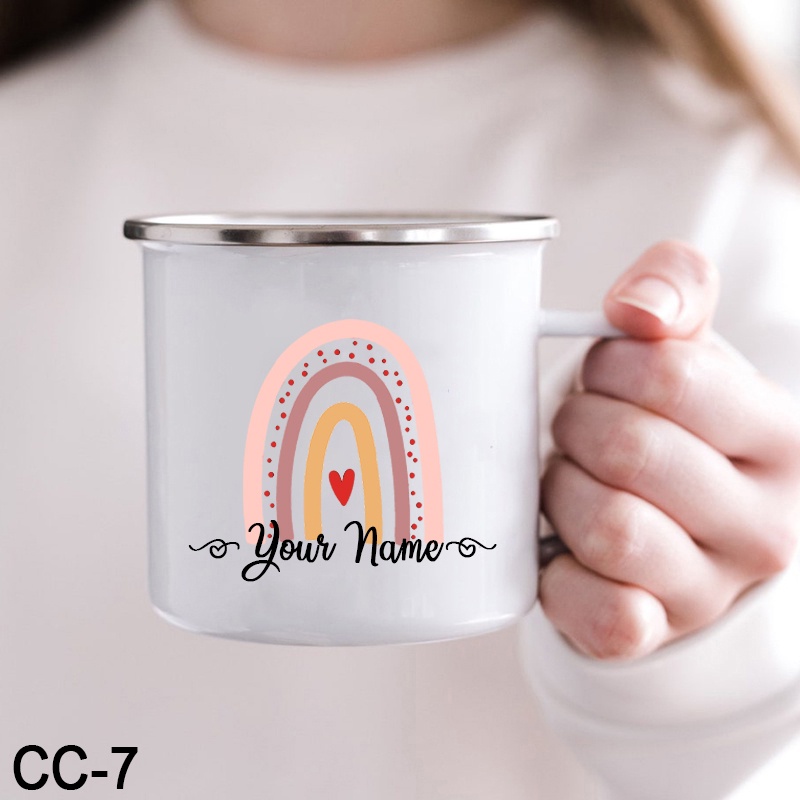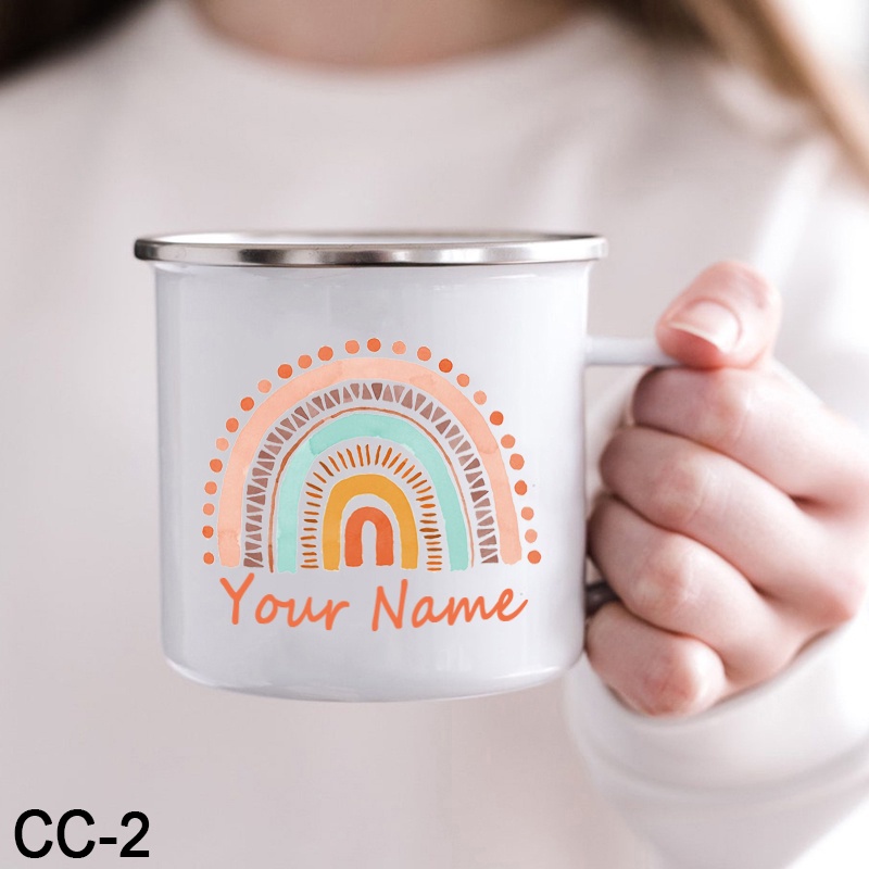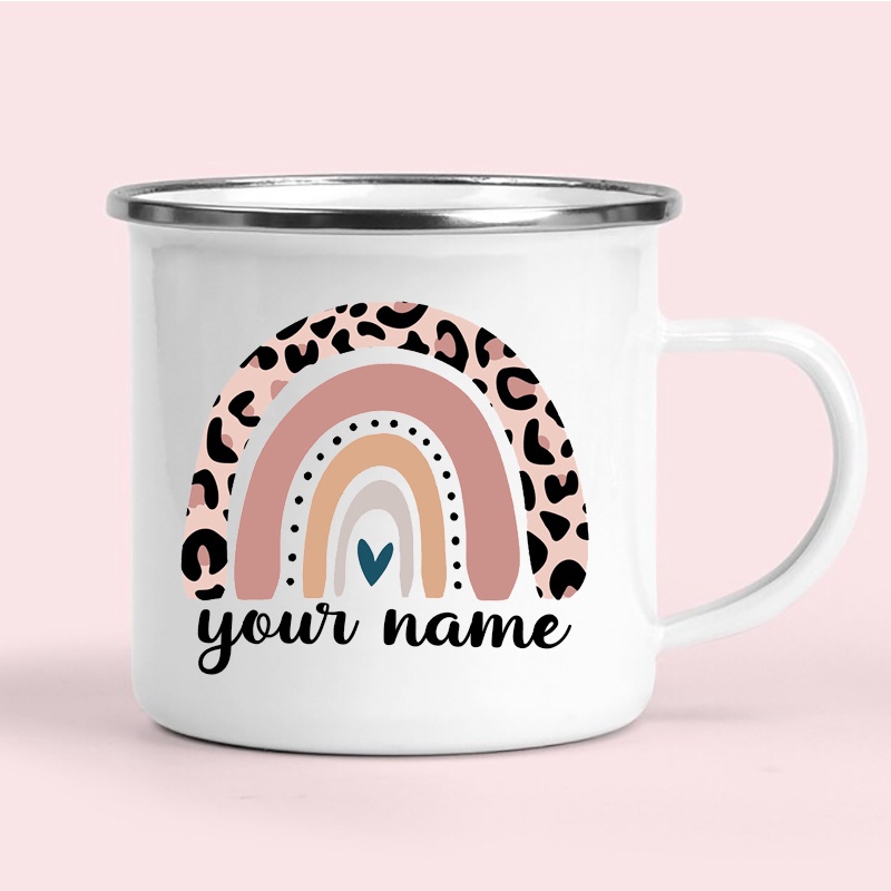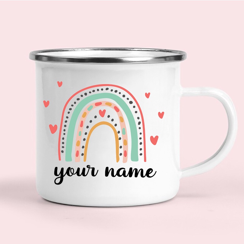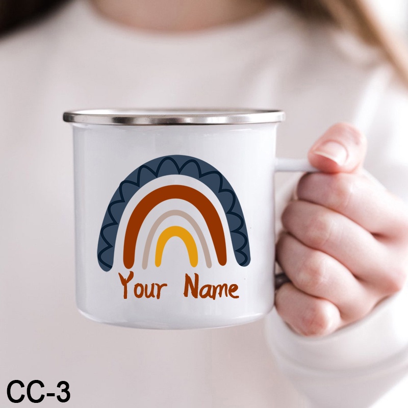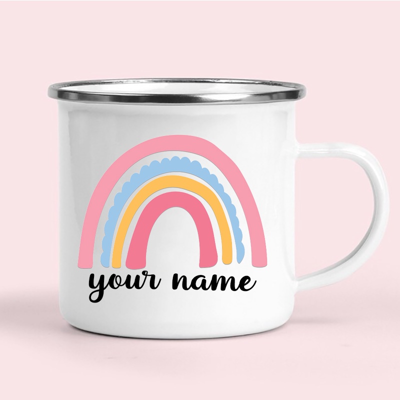 Free Add Name Rainbow Mugs Name Print Enamel Cups Coffee Mugs Handle Drinkware Mug