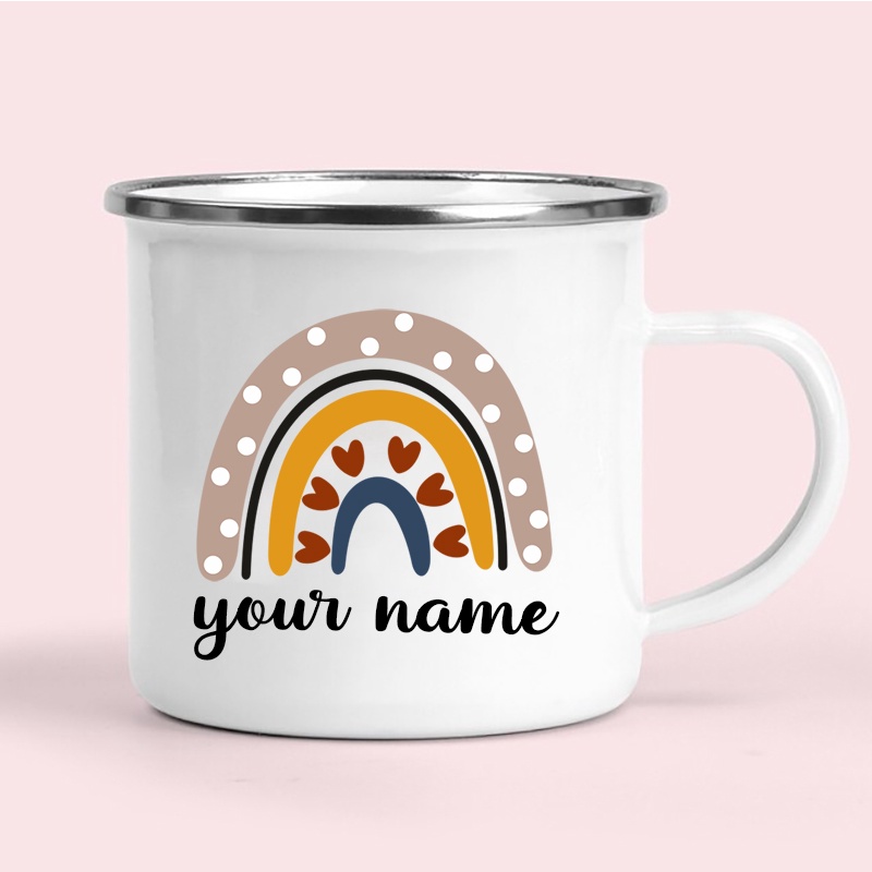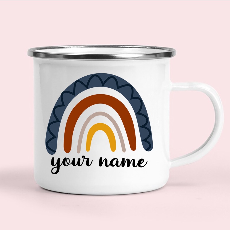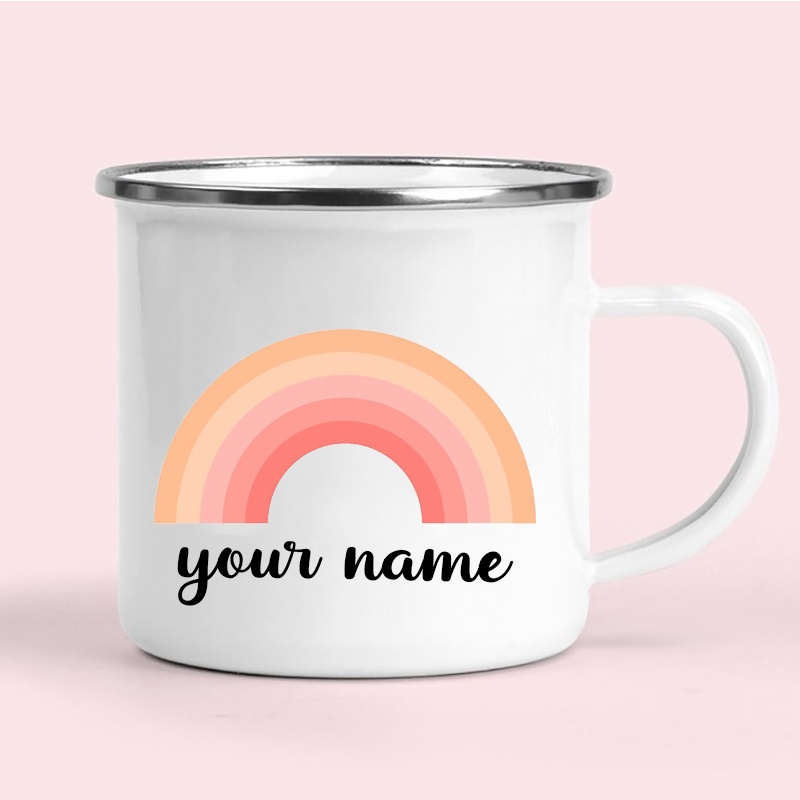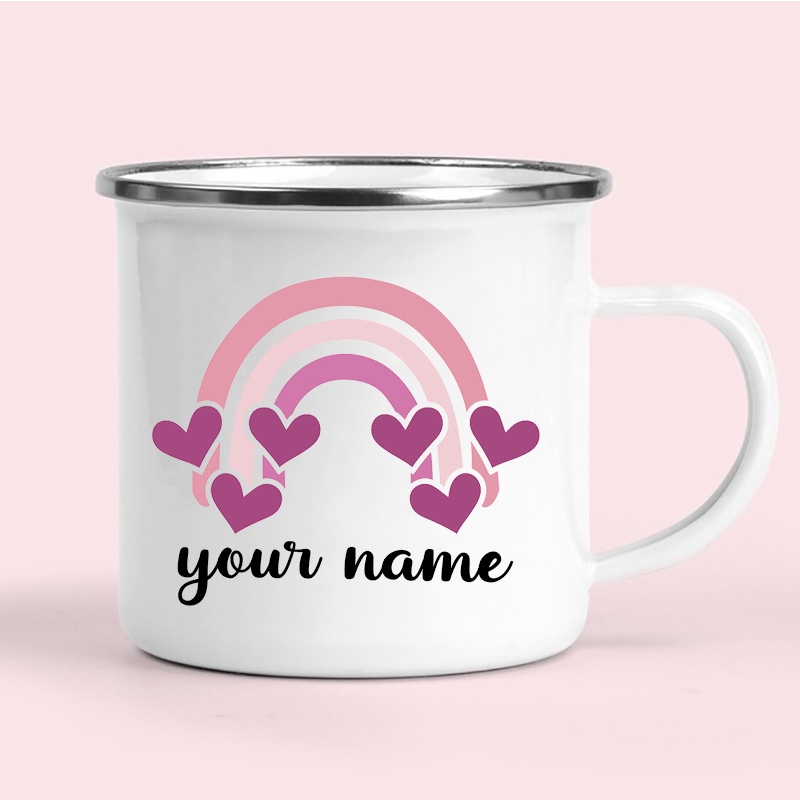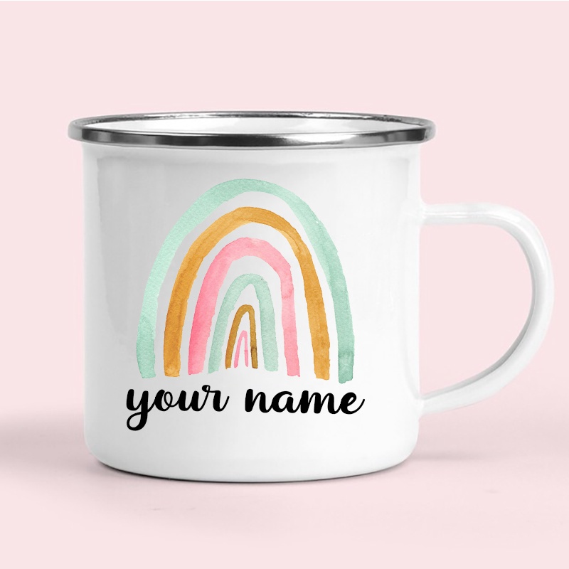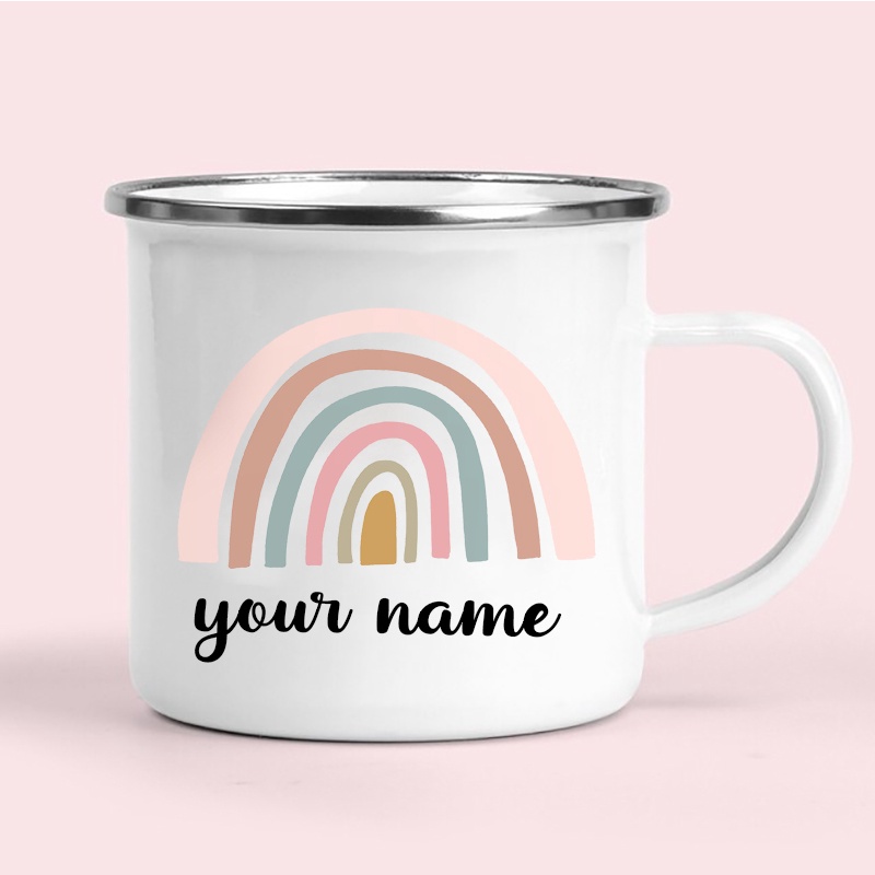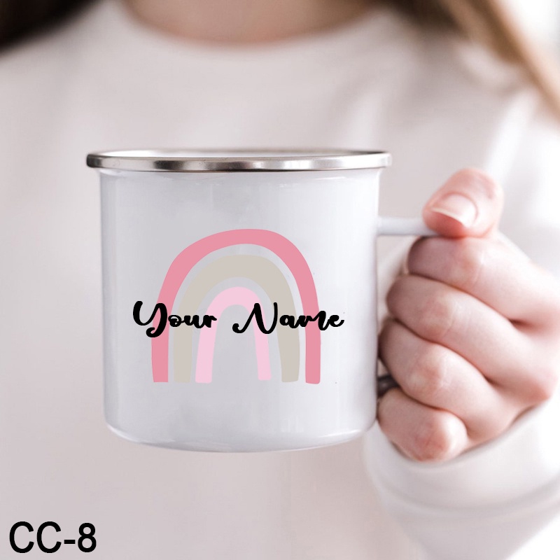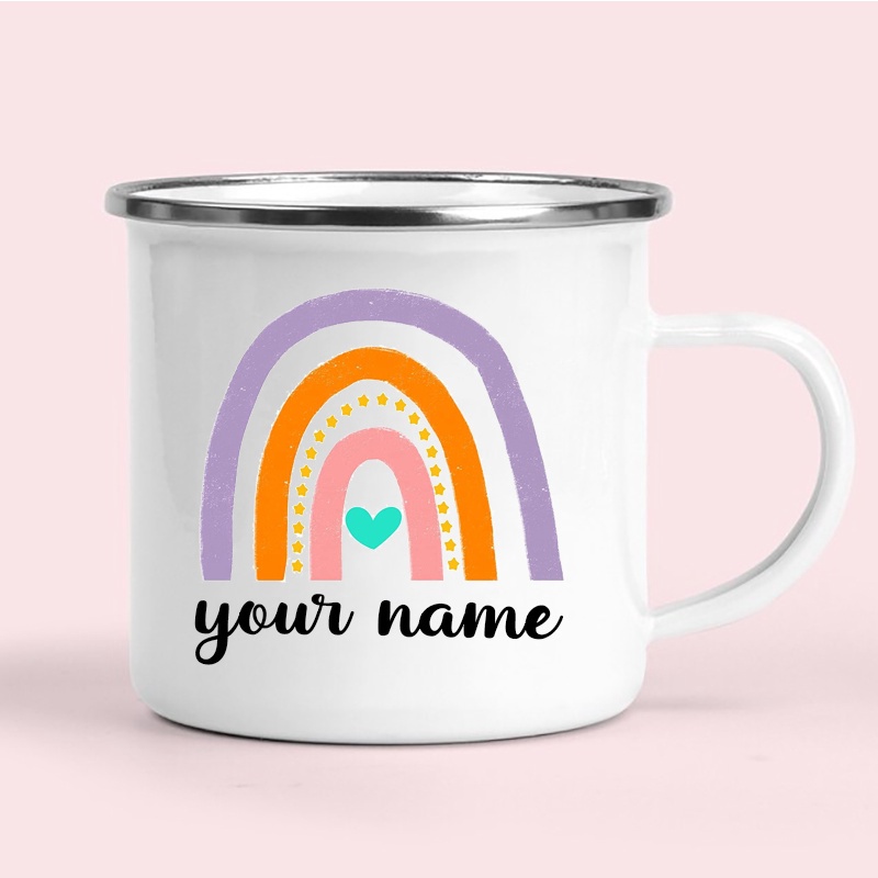 Free Add Name Rainbow Mugs Name Print Enamel Cups Coffee Mugs Handle Drinkware Mug