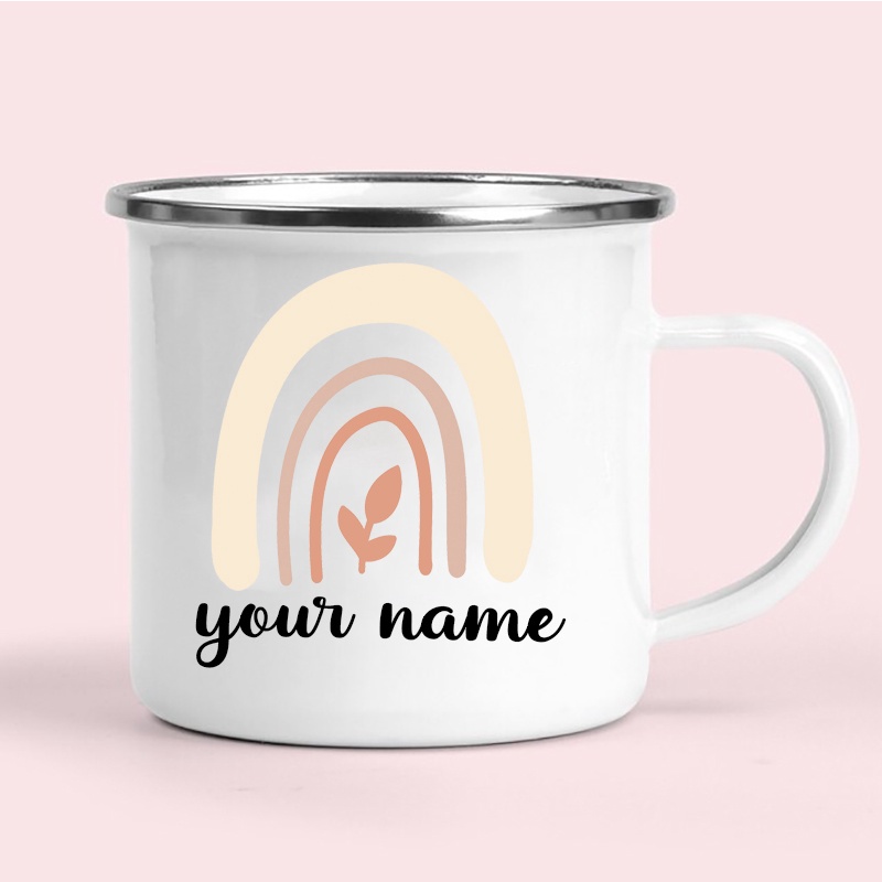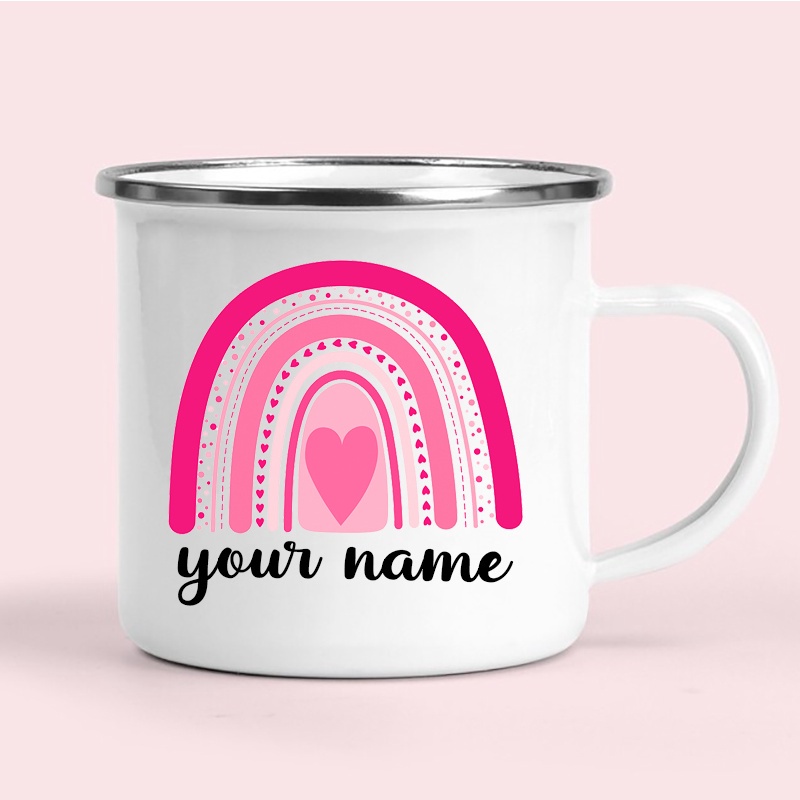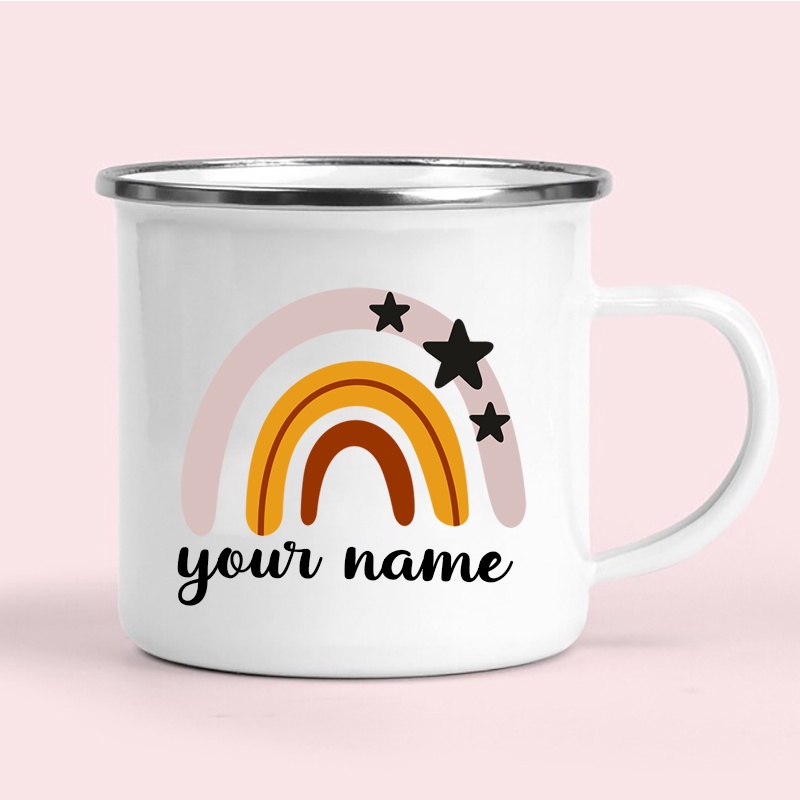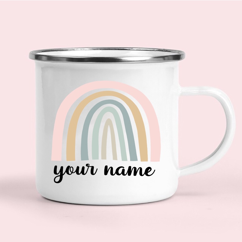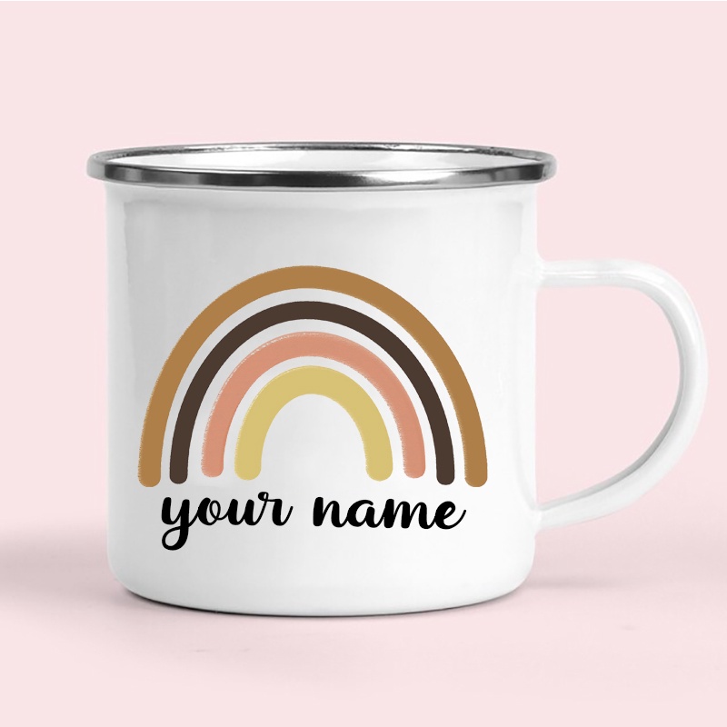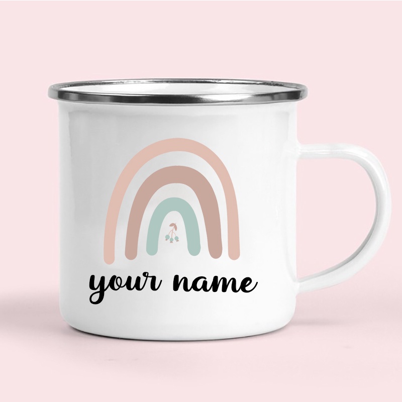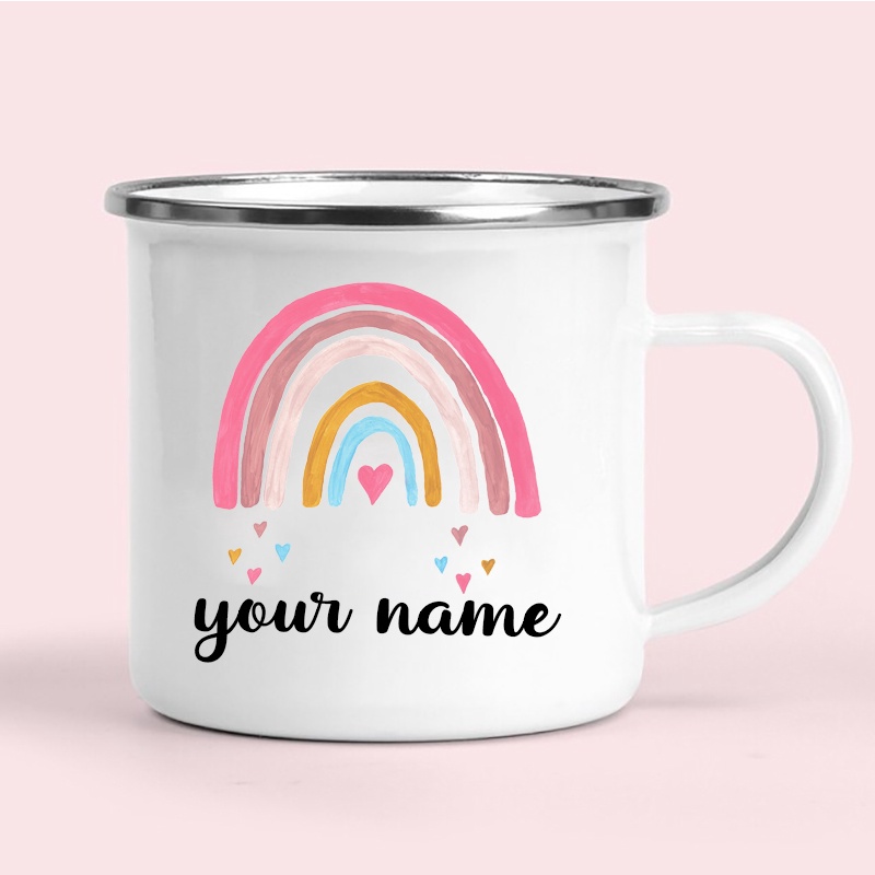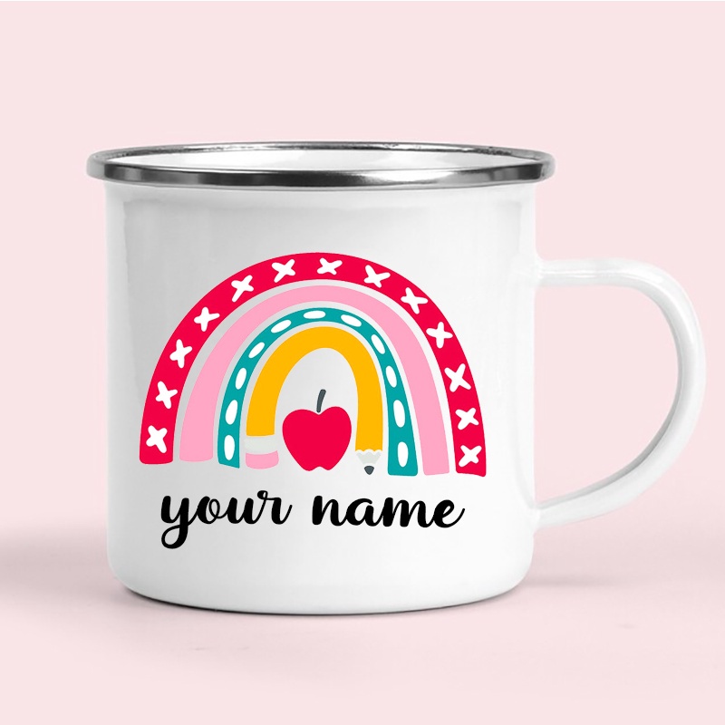 Free Add Name Rainbow Mugs Name Print Enamel Cups Coffee Mugs Handle Drinkware Mug
