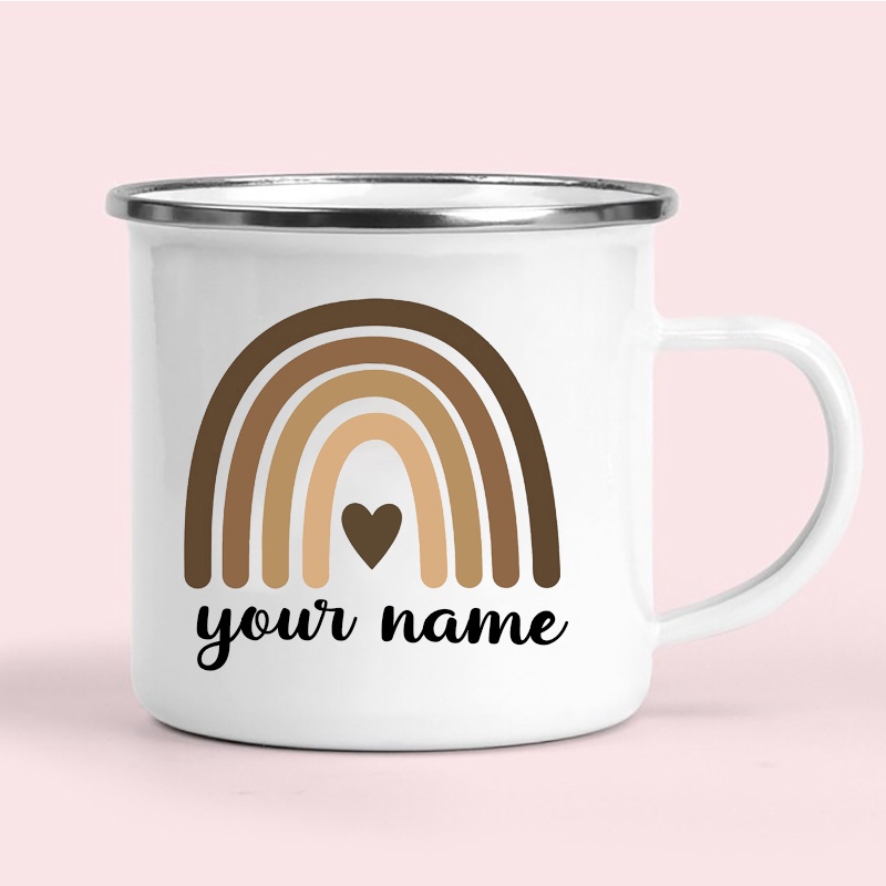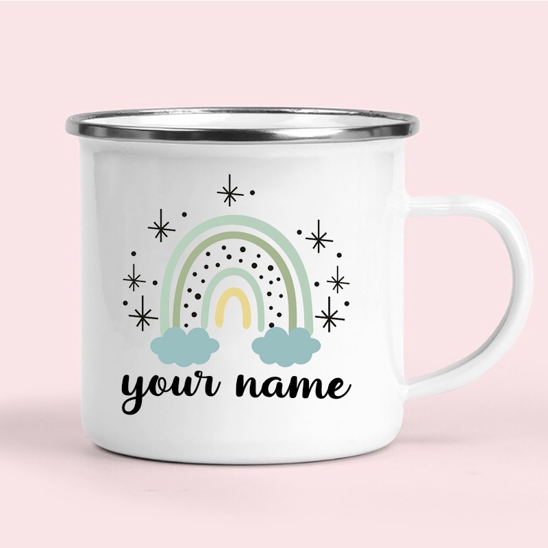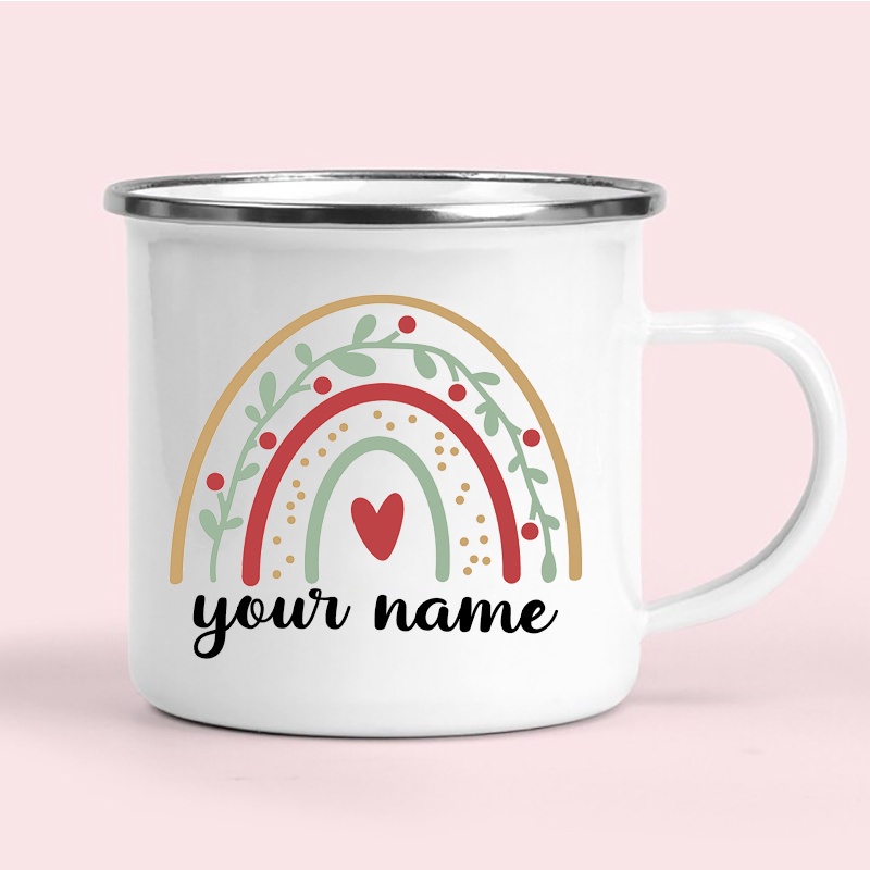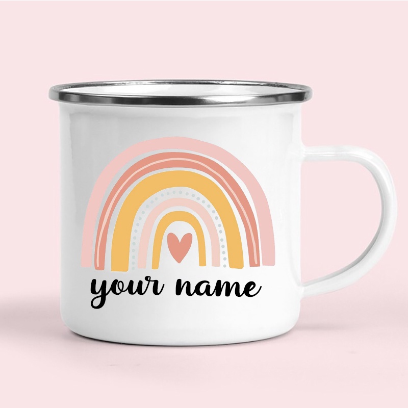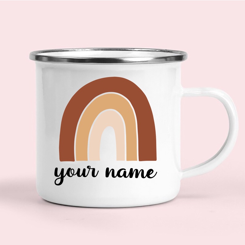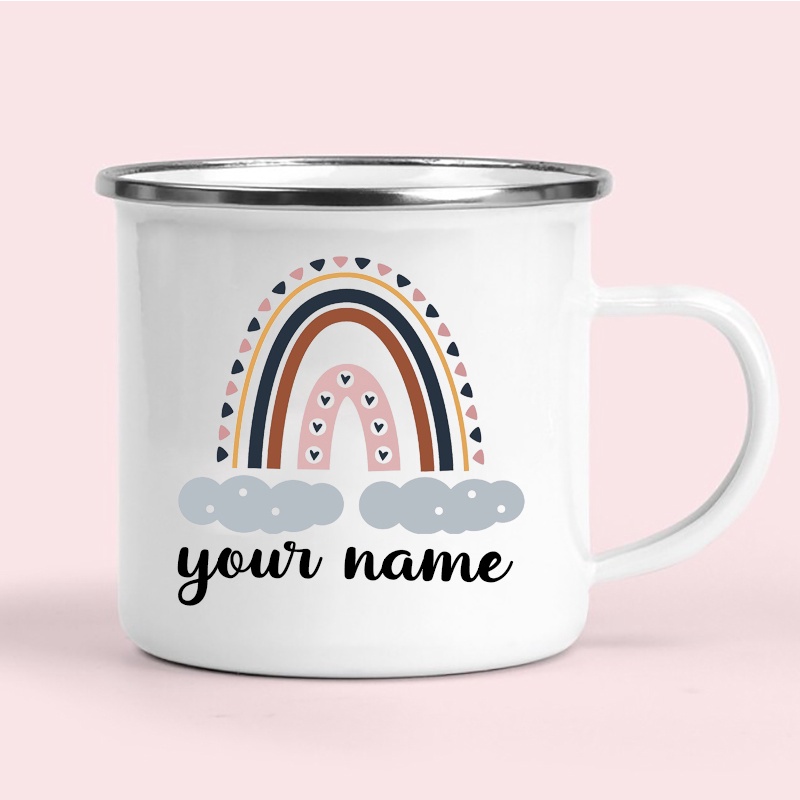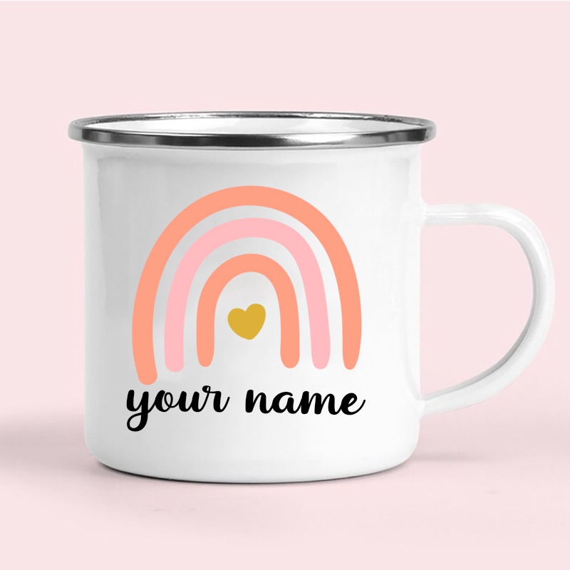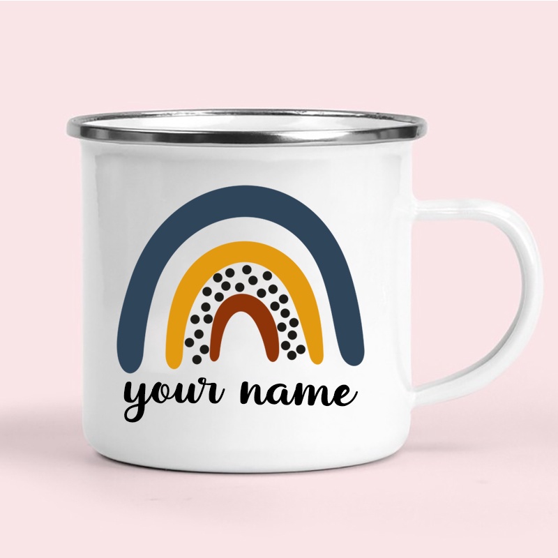 Free Add Name Rainbow Mugs Name Print Enamel Cups Coffee Mugs Handle Drinkware Mug