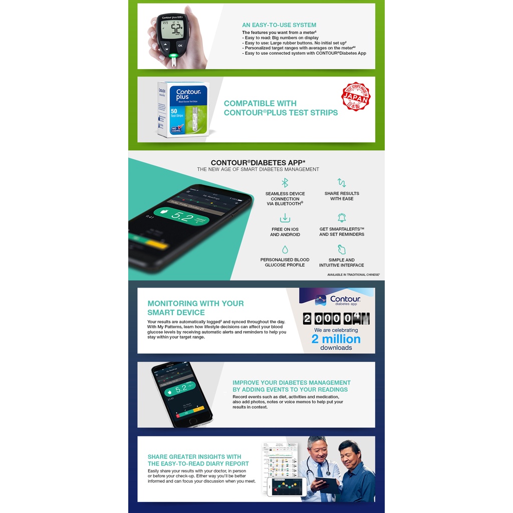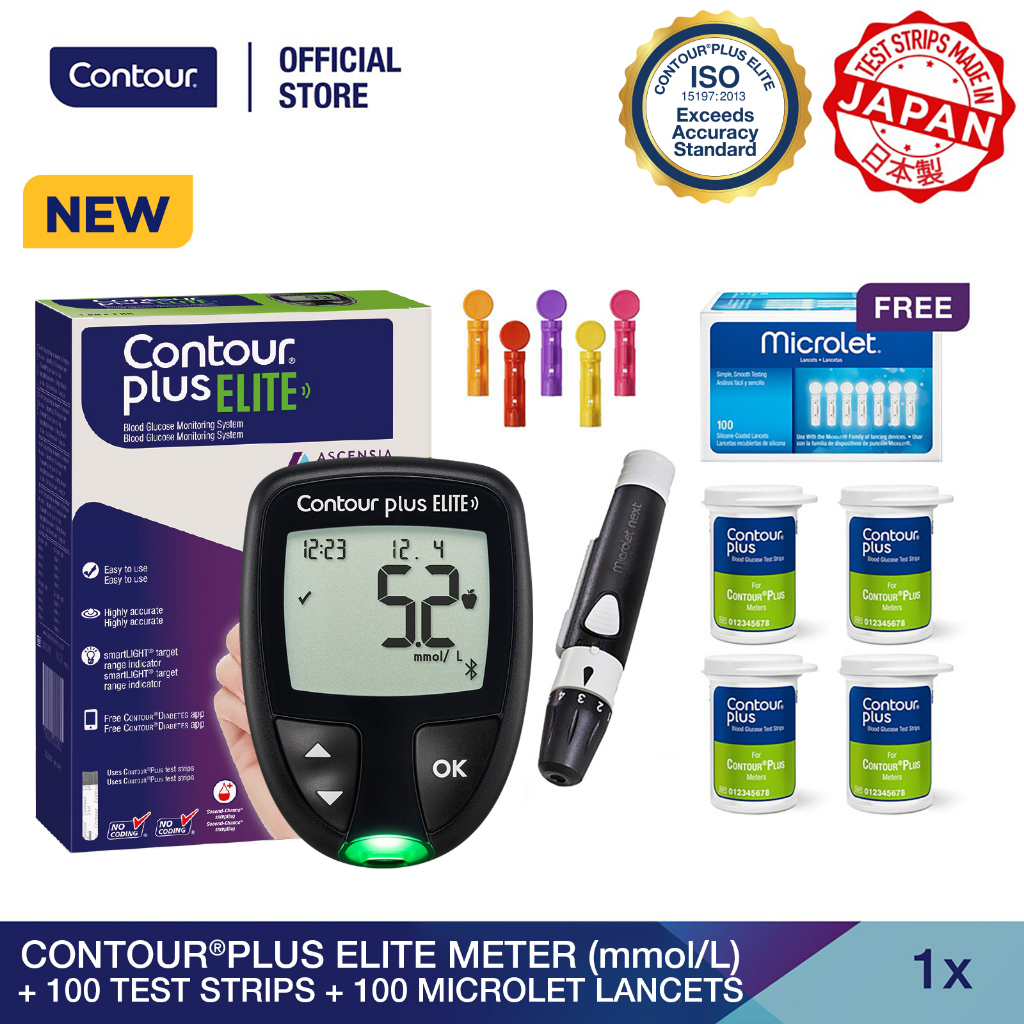 CONTOUR®PLUS ELITE Blood Glucose Meter (mmol/L) + Test Strips 100's + MICROLET® Lancets 100's