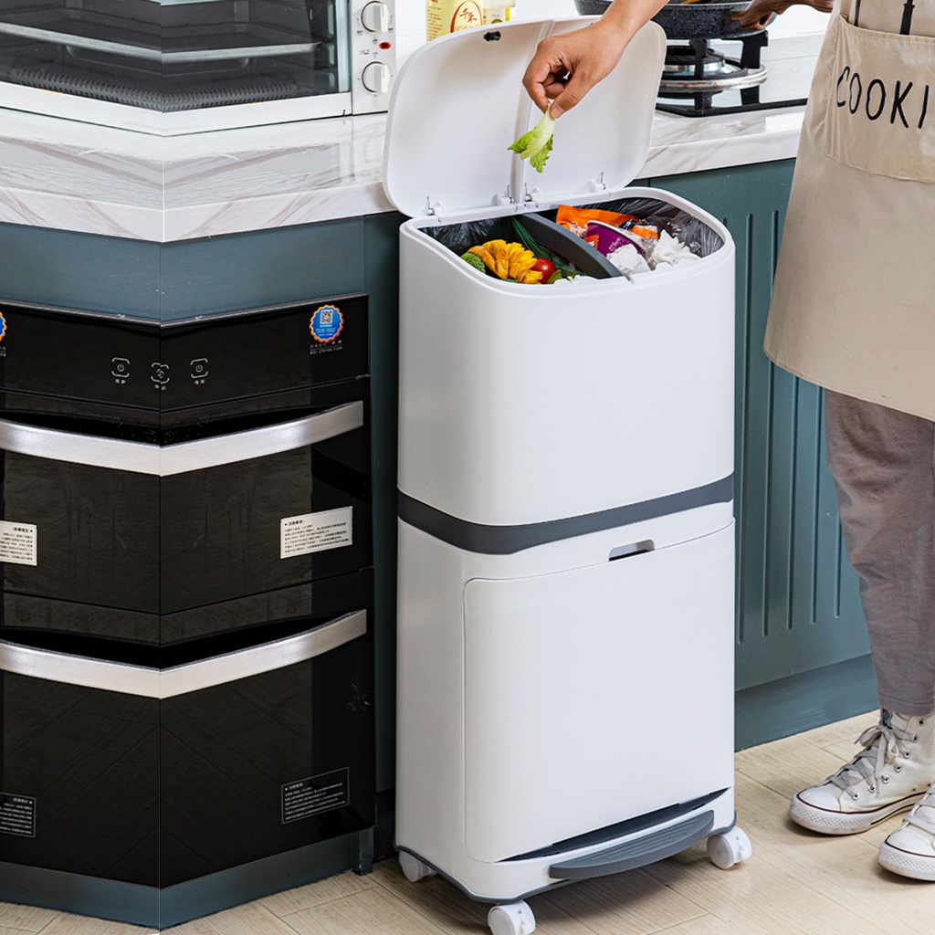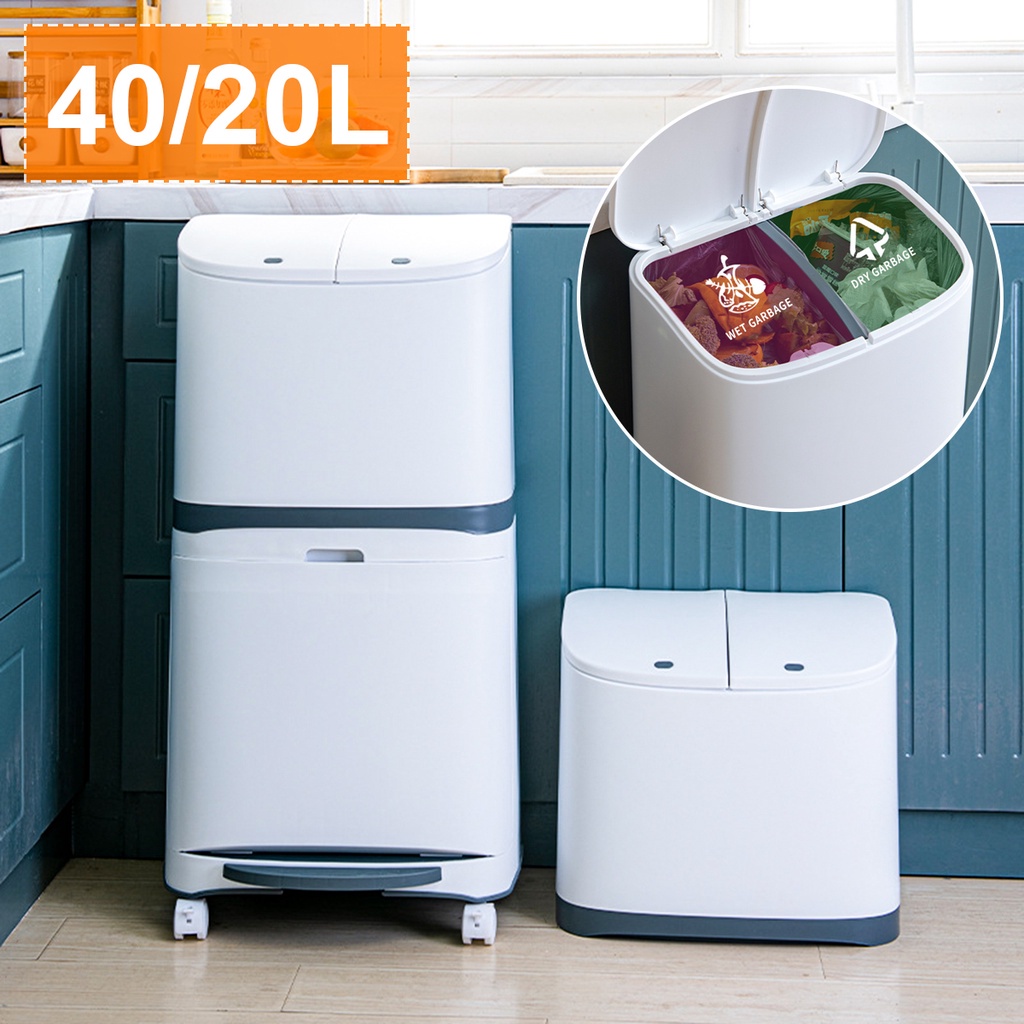 Convenient Garbage Bucket Sorted Waste Bin With Wheel Plastic Kitchen Trash Can Corner Recycle Bin Press Open New 20L/40L