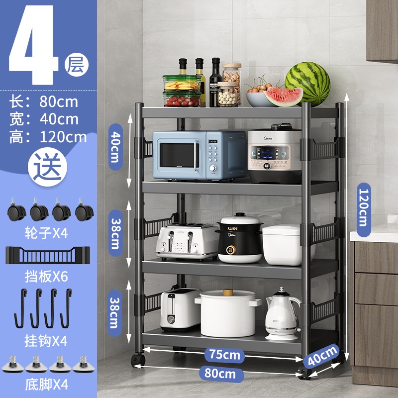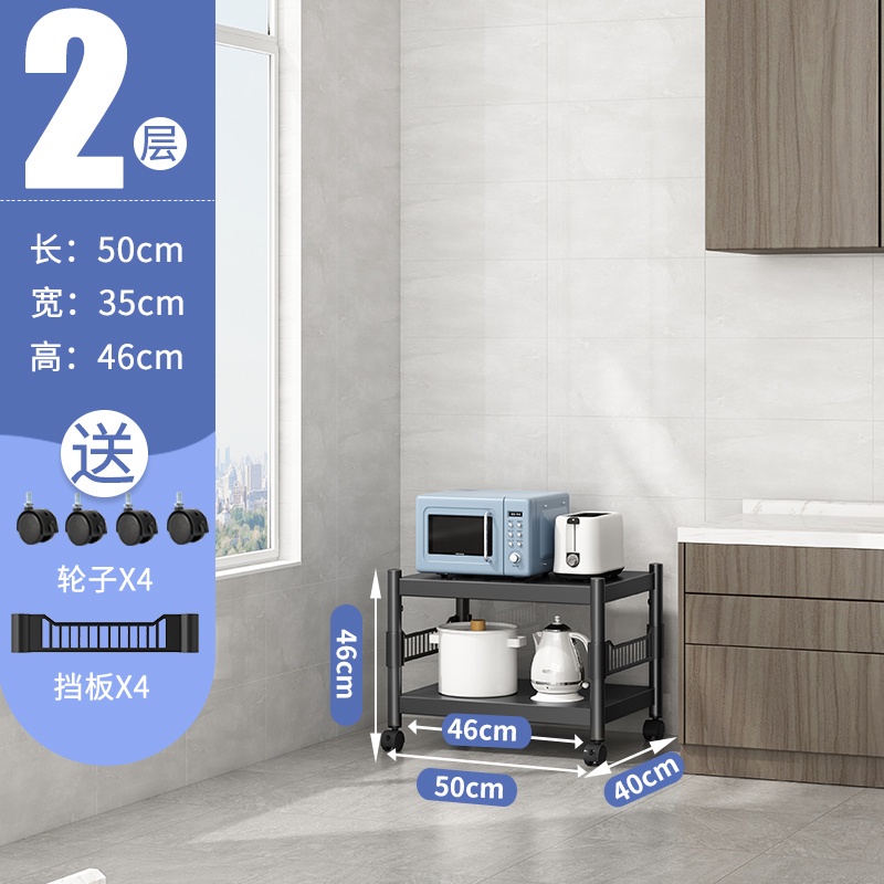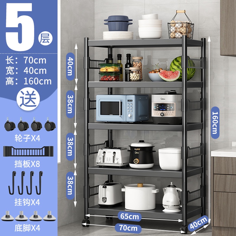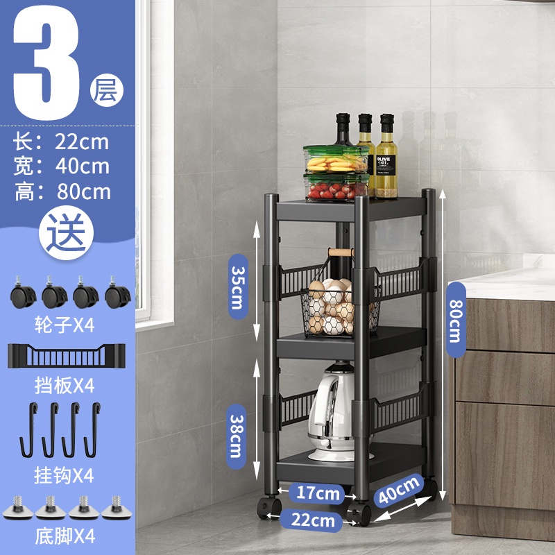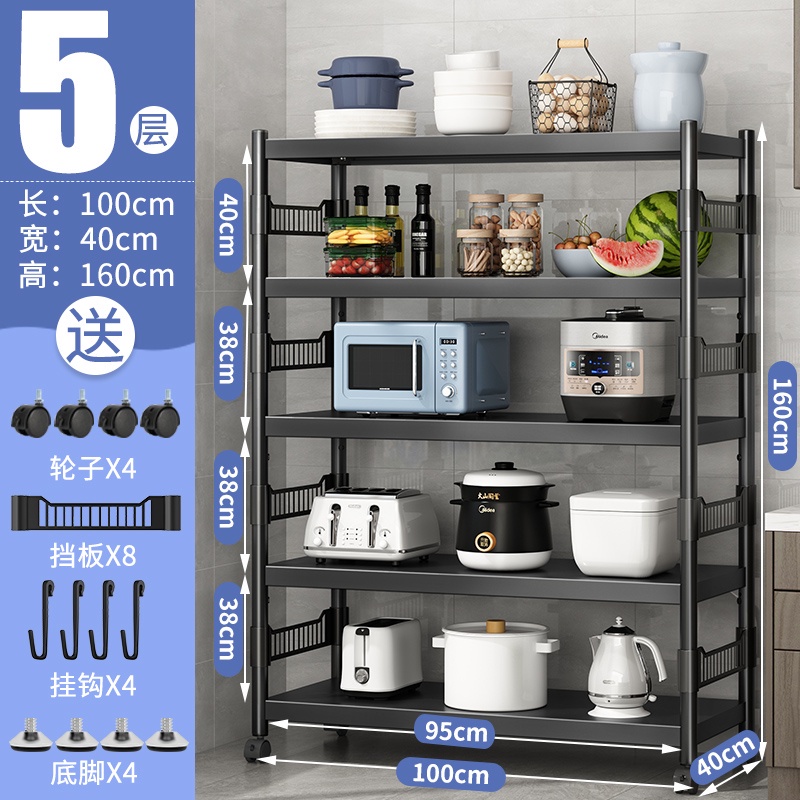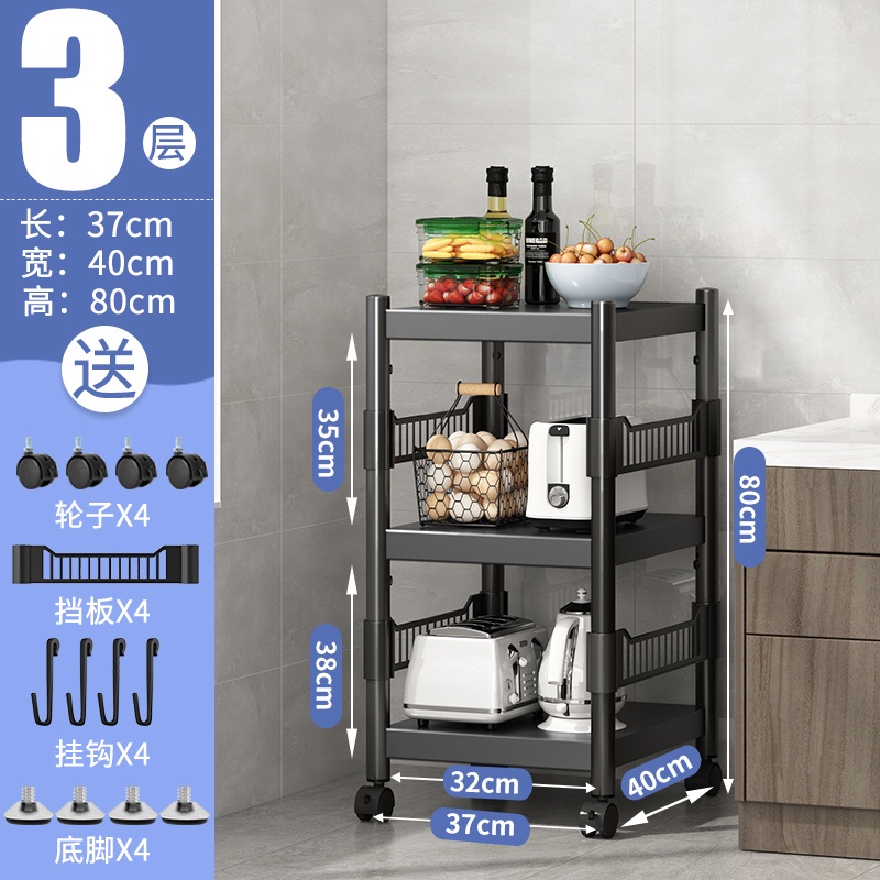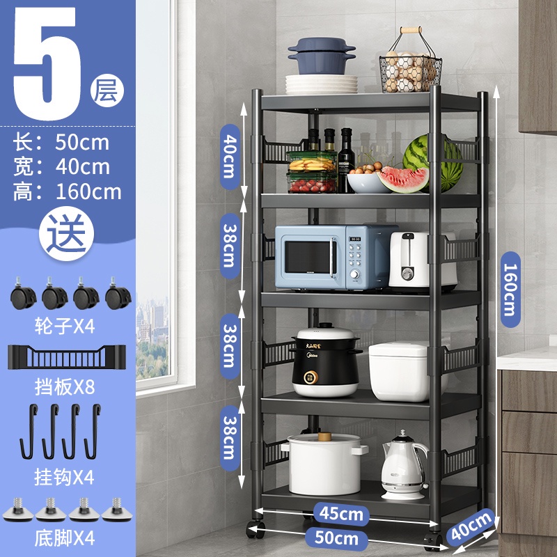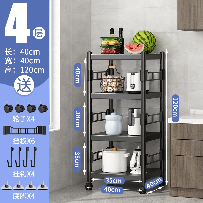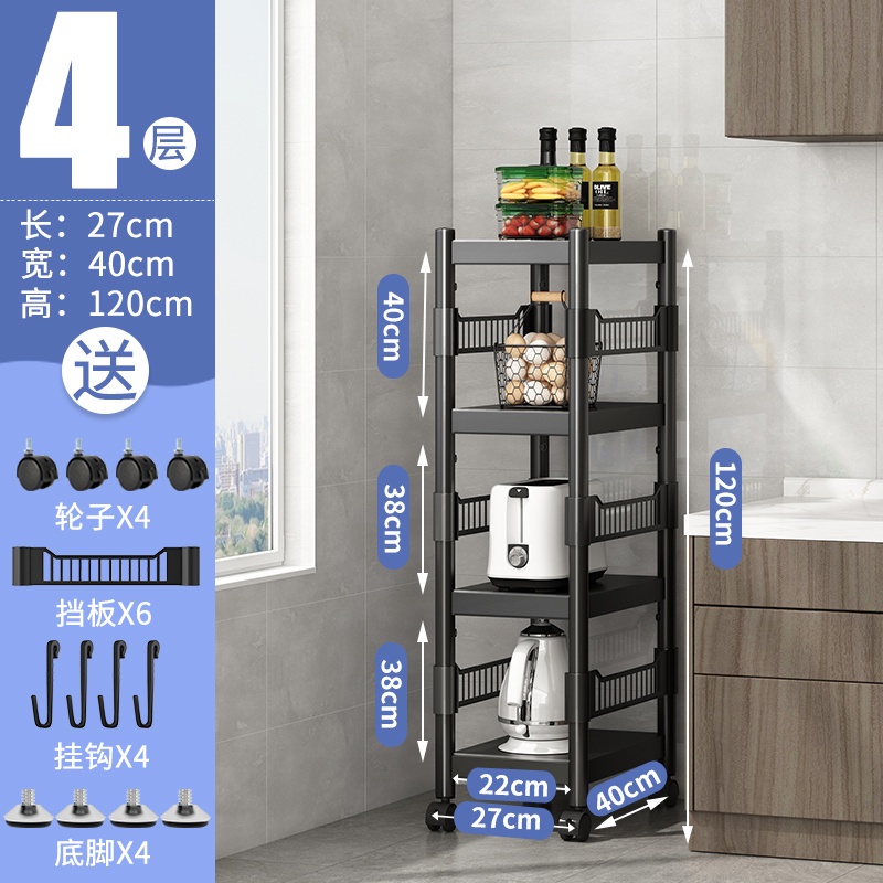Cool Black Metal Rack Shelves Antirust Kitchen Storage Rack Bookshelf with Wheels Movable Slit & Corner Storage Rack Shelf - 2/3/4/5 Tier