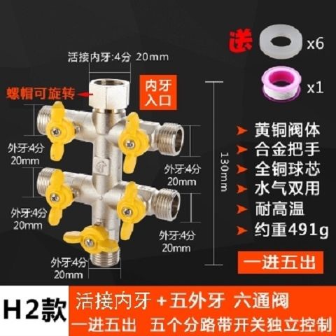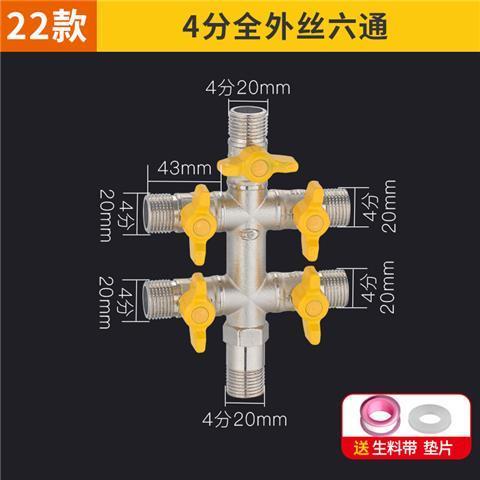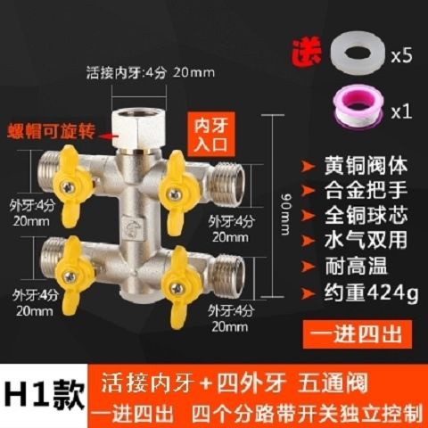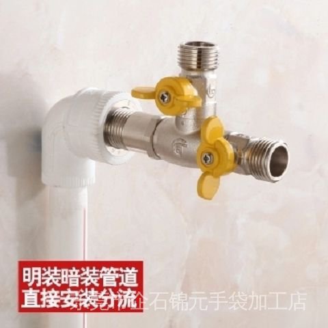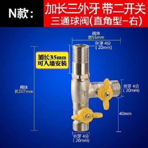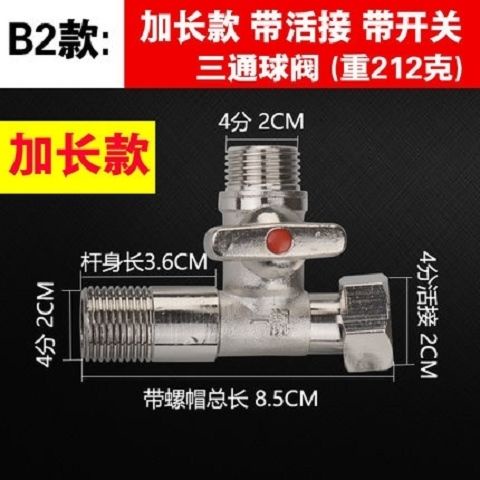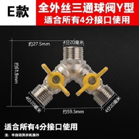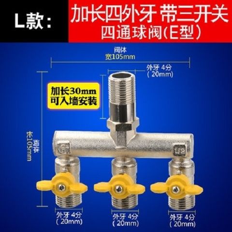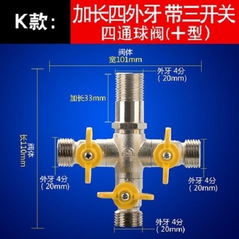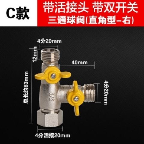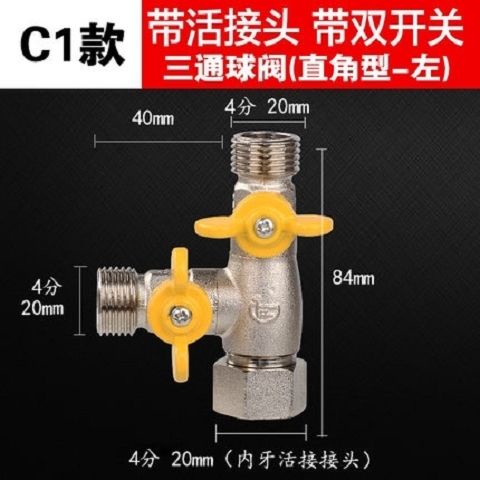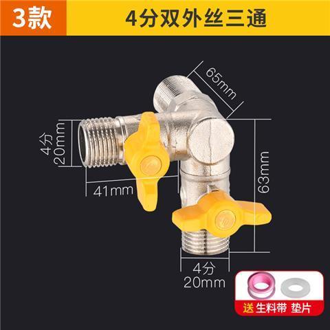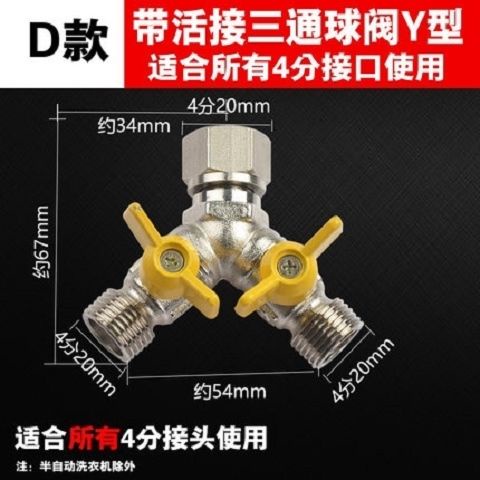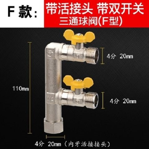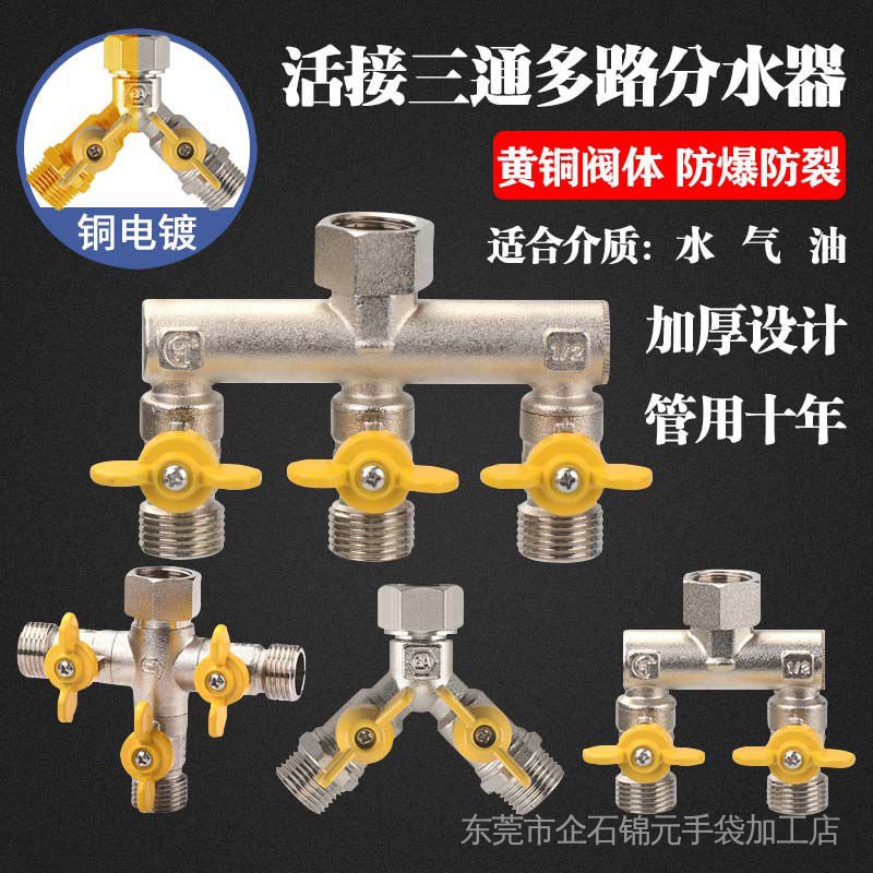 Copper Ball Valve Tee With Alive Joint One Point Two-Way Switch Water Pipe Splitter Washing Machine 4 Points Faucet