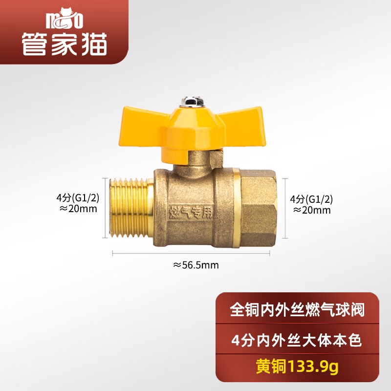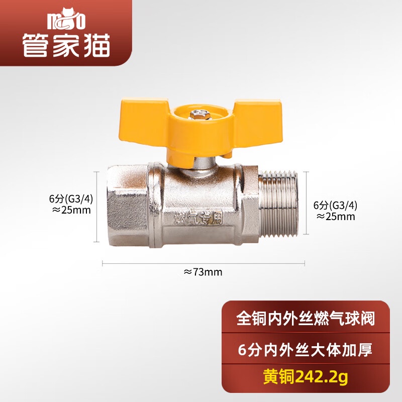 Copper Fuel Gas Valve Natural Gas 4 Points Ball Valve Dn15 Liquefied Gas 6 Points Double Internal Thread Internal and External Thread Valve Switch