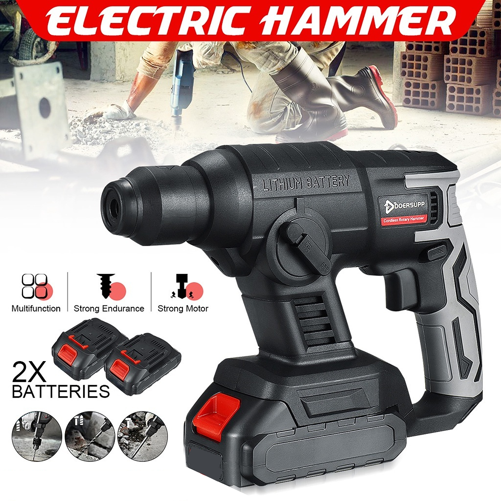 Cordless Electric Hammer Drill Rotary Hammer Battery DIY Power Tool Drill Demolition Hammer Rechargeable