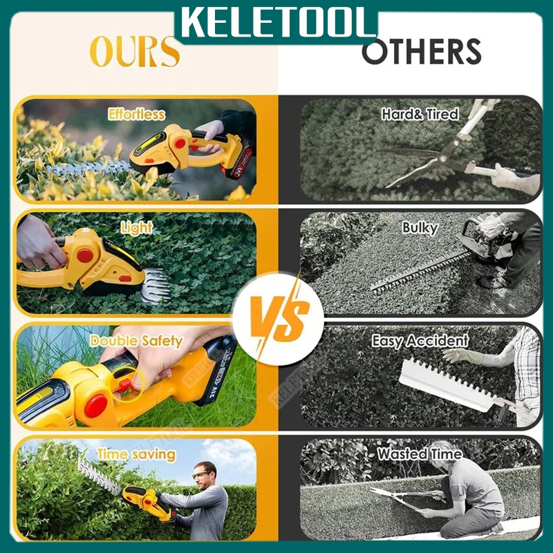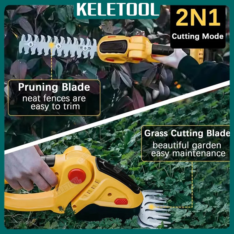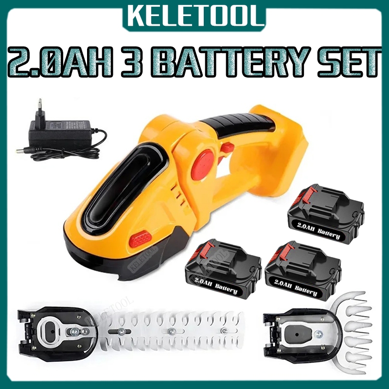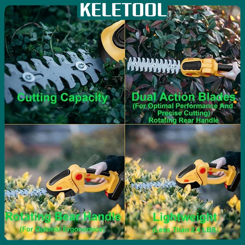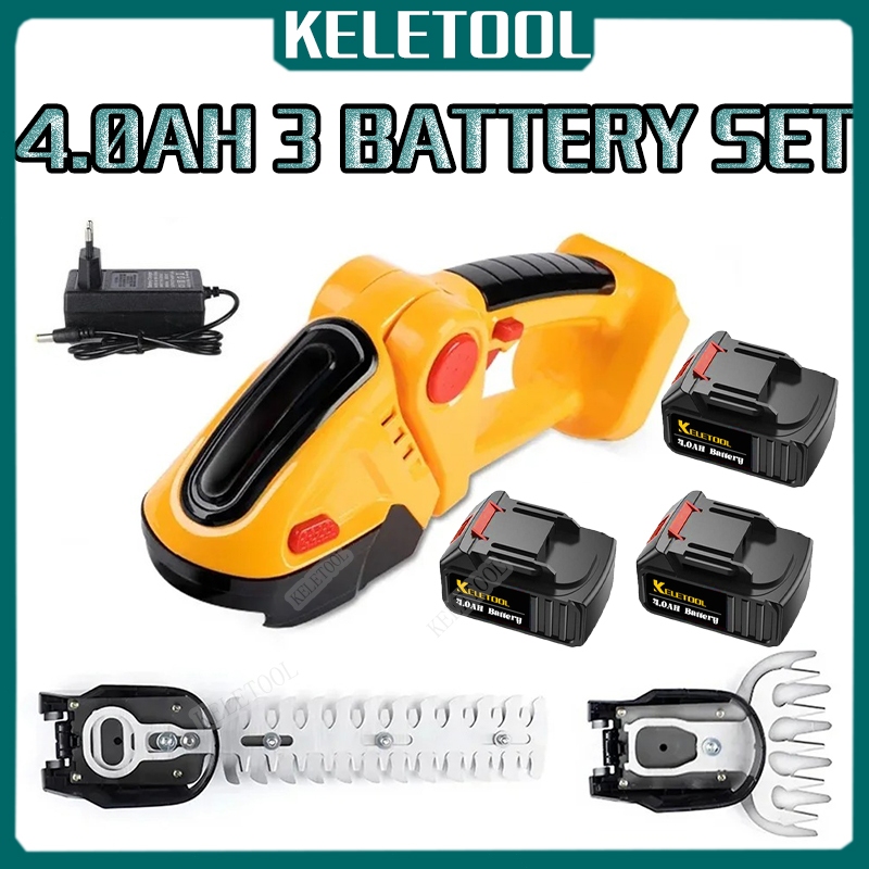 Cordless Hedge Trimmer Electric Shrub Trimmer Grass Shears Handheld Grass Cutter Hedge Shear with 3 PCS Rechargeable Battery and Charger for Garden Lawn