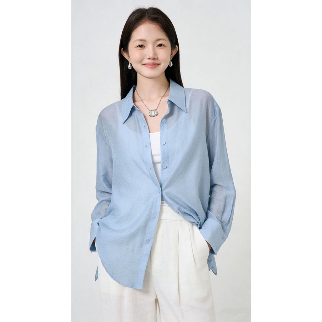 [Light Luxury Acetate Tencel] Sunscreen Shirt Women Long Sleeve 26 New Spring Summer French High-End Shirt Jacket Top