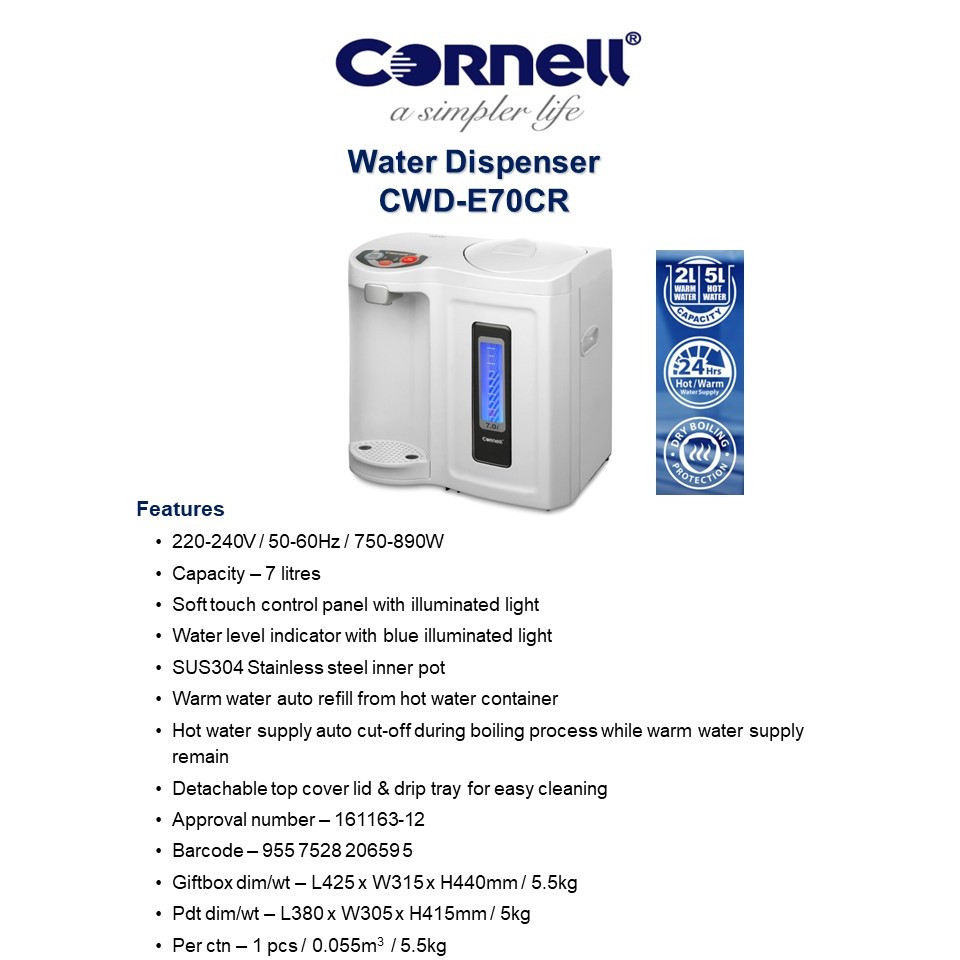 Cornell Hot & Warm Water Dispenser 7L CWD-E70CR