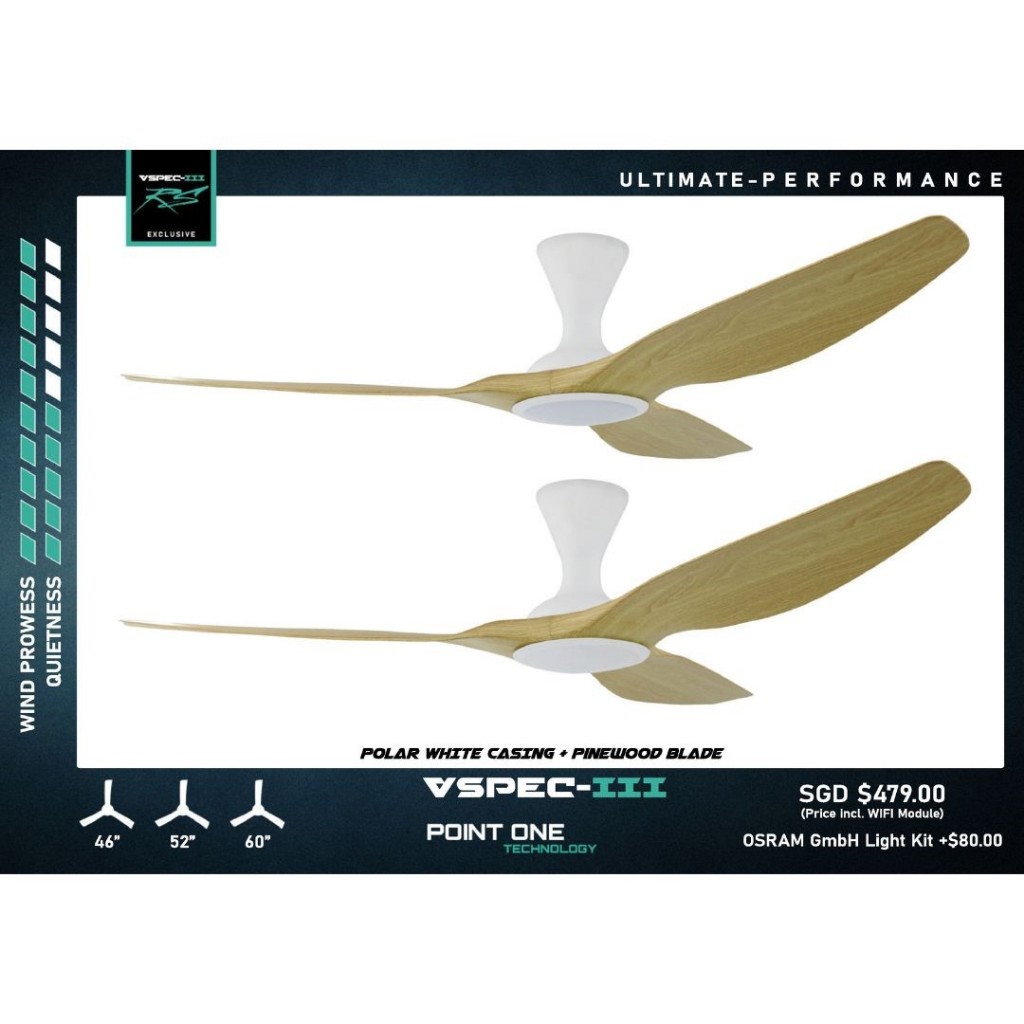 Point One Ceiling Fan Light Cyclone RS White Casing 46" 52" 60" EC Motor Smart Remote SG Warranty
