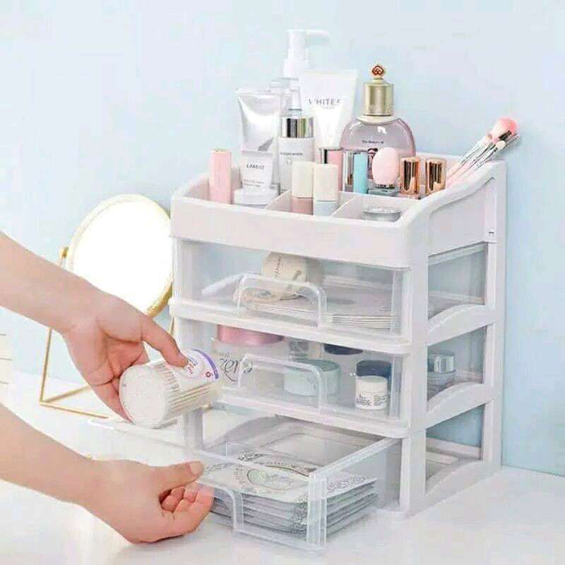 Cosmetic Rack / 2 Drawer Stacking Plastic Make Up Shelves / Versatile Shelves (1750g)