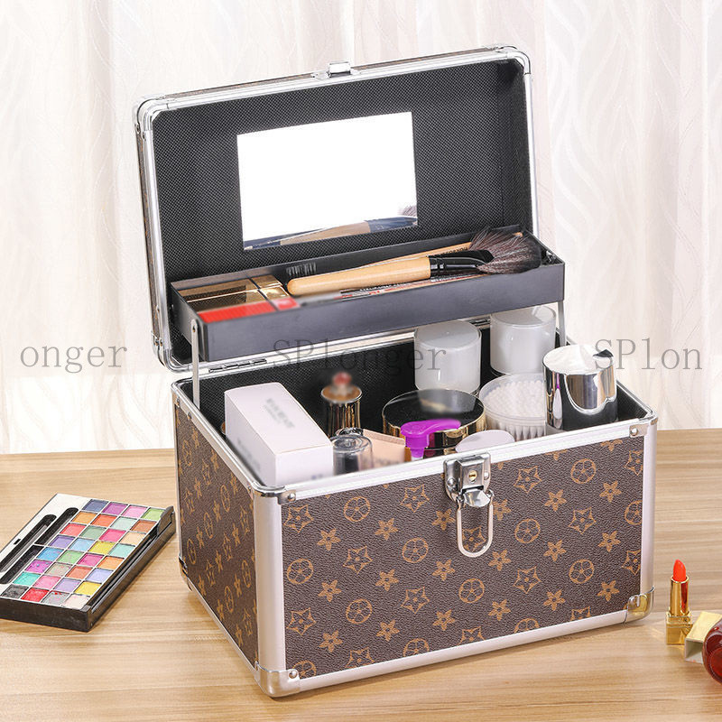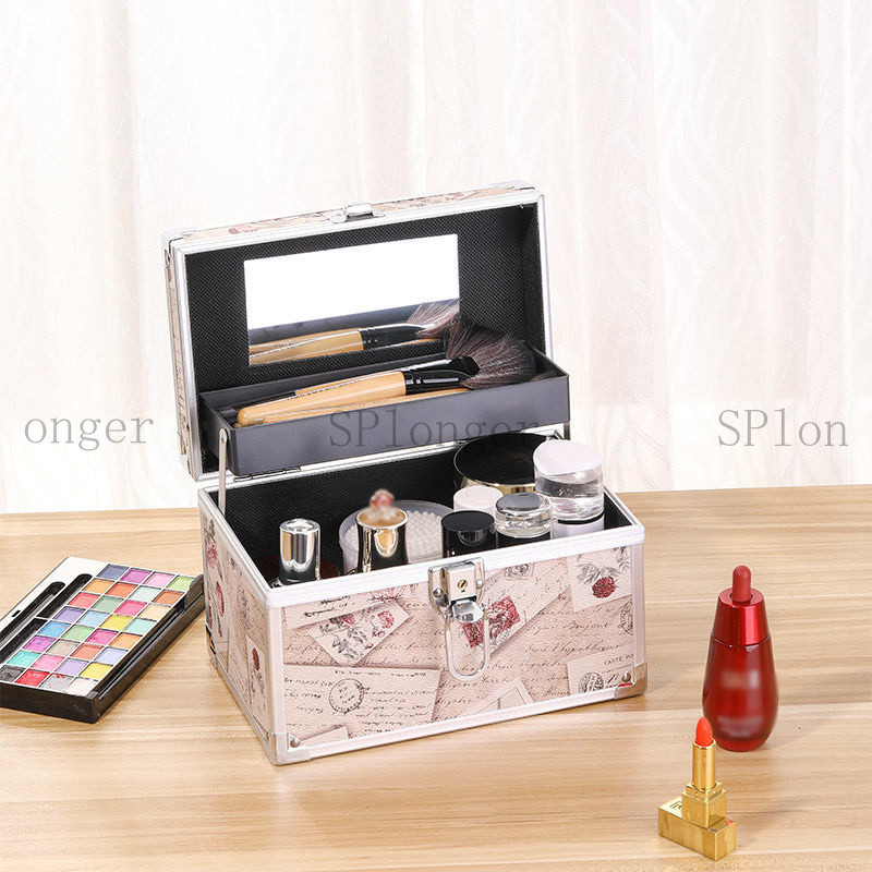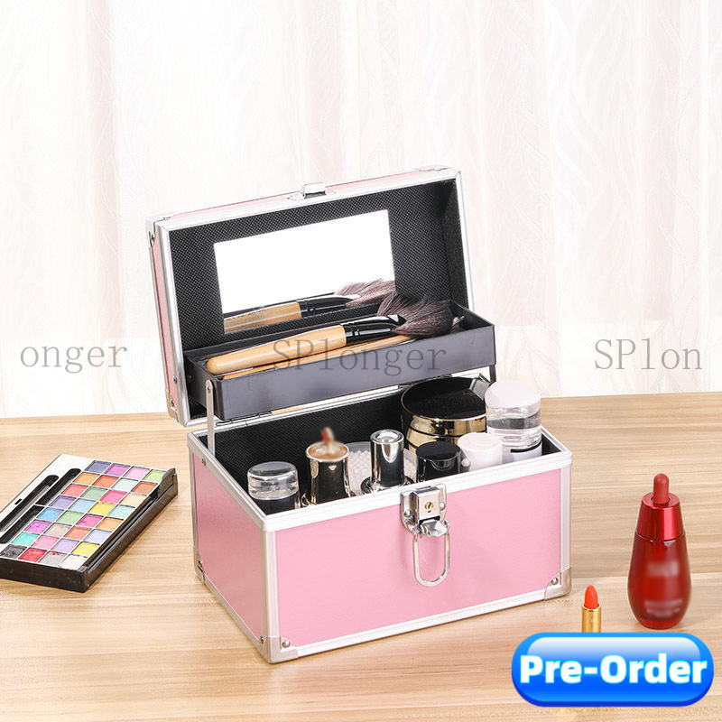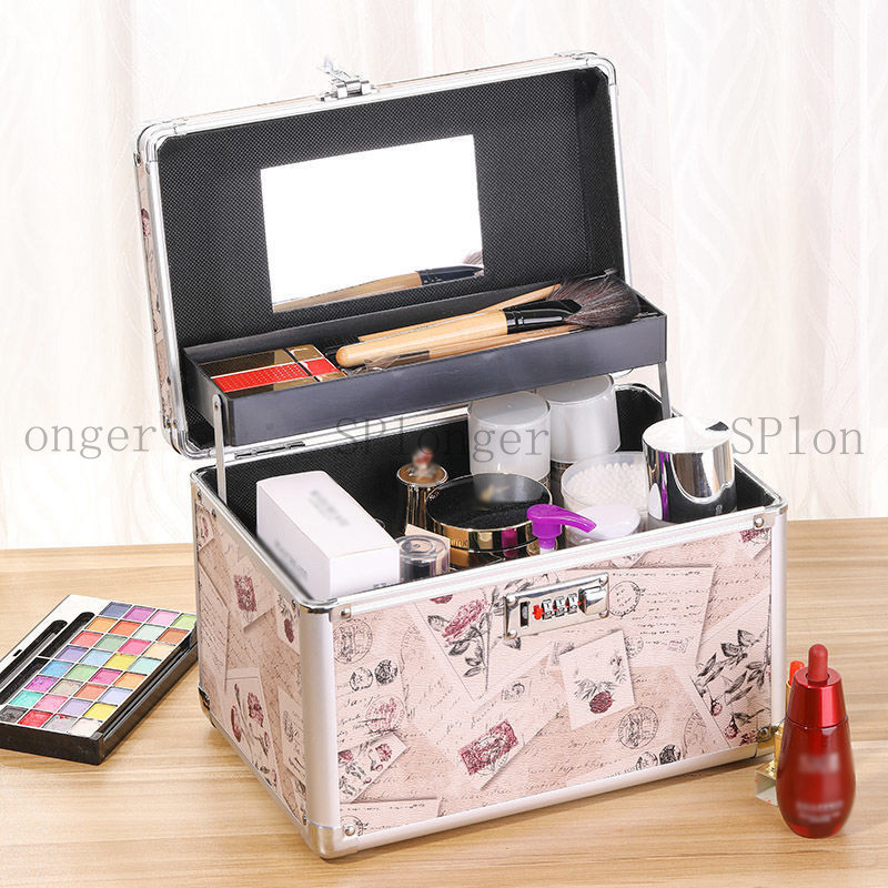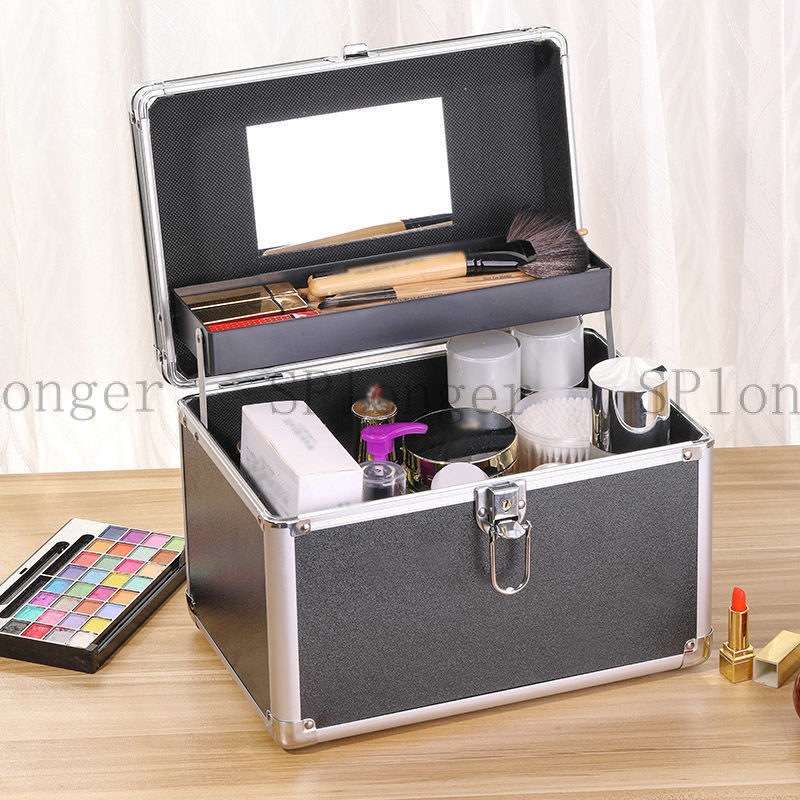 Cosmetic Storage Box Aluminum Alloy Suitcase Toolbox Makeup Case Travel Box Carry box with Lock Tool Box