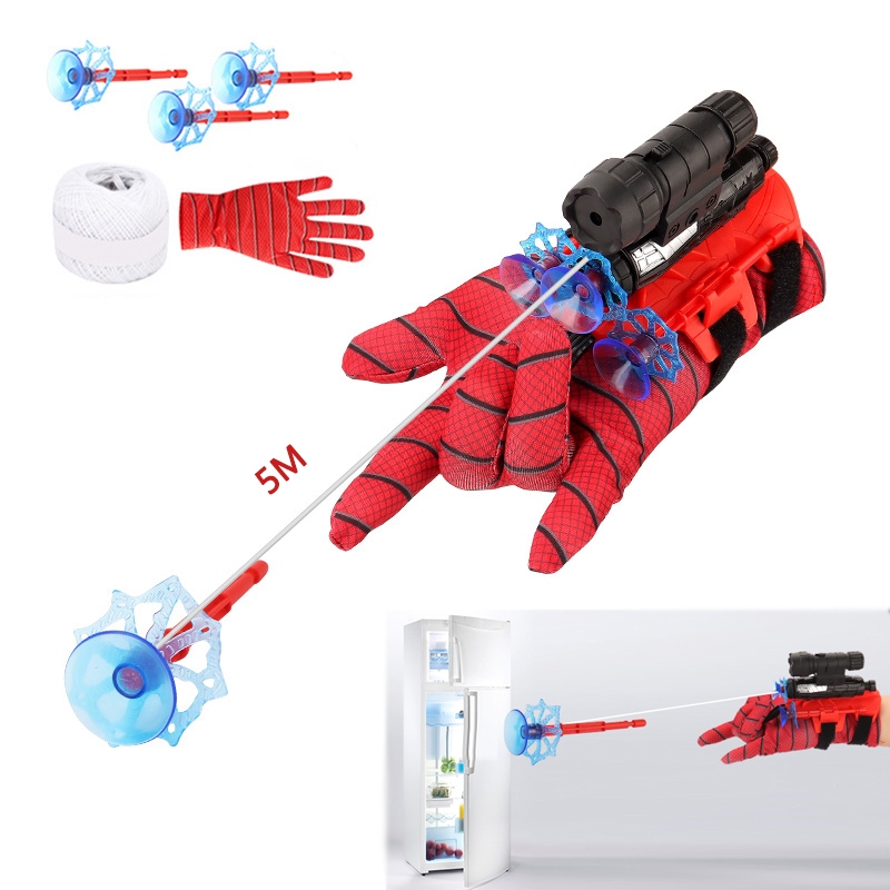 Cosplay Spider Man Web Shooters Wrist Suction Cup Spider Silk Launcher for Kid Toys With Laser Sights