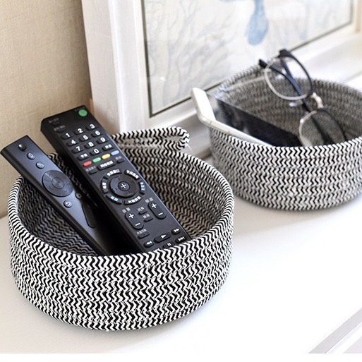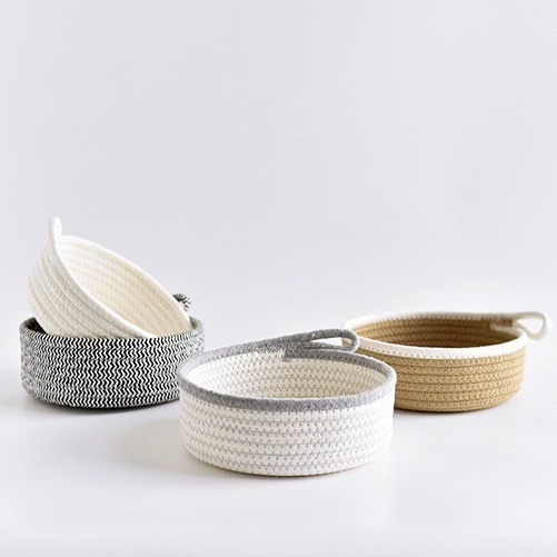 Cotton Rope Woven Table Soft Storage Basket w Loop Handle (SET OF 2) | For keys and trinkers