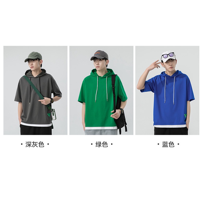 Cotton Summer Men's Short Sleeve Hoodie Solid Relaxed Sports Hip Hop Sweatshirt Men's Short Sleeve Top