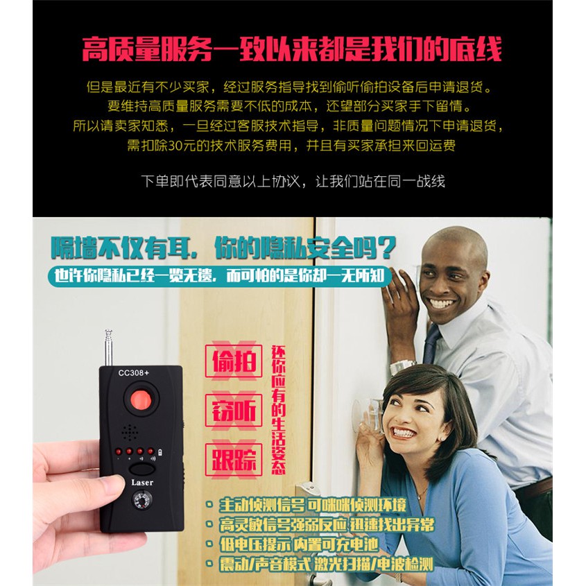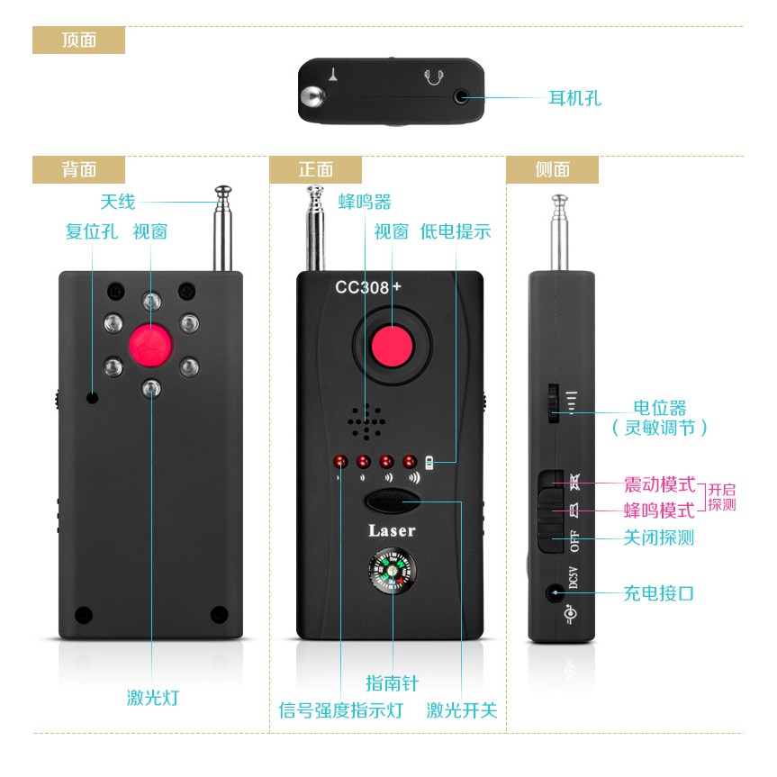 Counter Spy Camera Detector ( CC308+ ) Radio Wave Detector / Spy Camera Lens / Protect Privacy