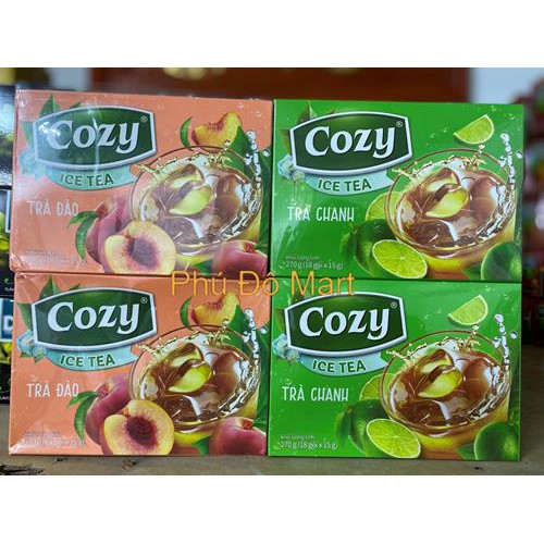 (Combo) Cozy Ice Tea Lemon / Peach Flavor - Box of 270G (15g * 16 packs)