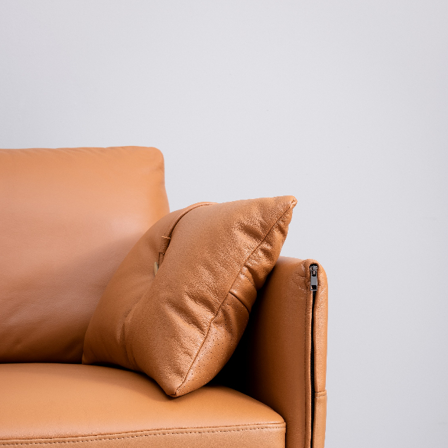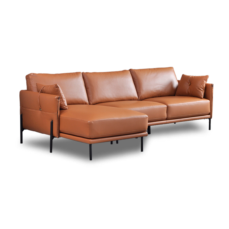 Cozylant Candour Leather Sofa / L Shape Sofa / Top Grain Half Leather Sofa / Brown Colour / Modern Minimalist Italian