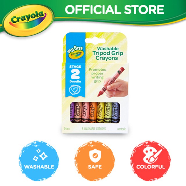 Crayola My First Tripod Grip Washable Crayons 8 count Pre School Supplies Washable n Easy Clean up Age 2 up