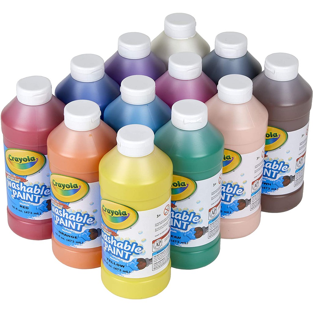 Crayola Non-Toxic Washable Paint, Plastic Squeeze Bottles, Bright Colors 473ml