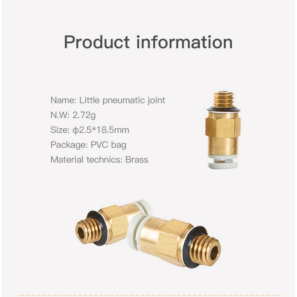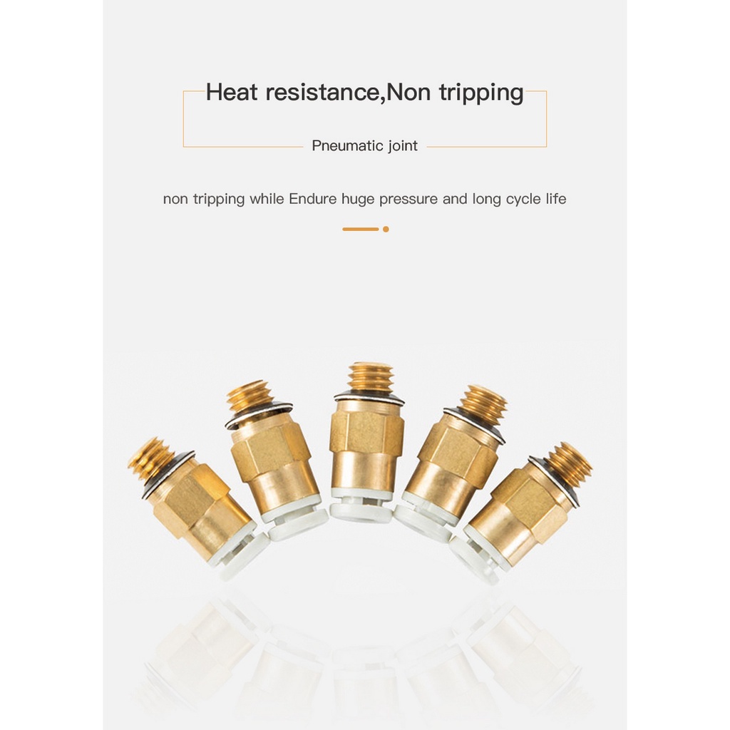 Creality Small Pneumatic Joint Connector for 3D Printer (Set of 2pcs) PC4-M6 Gold PTFE Tube Hotend Ender CR