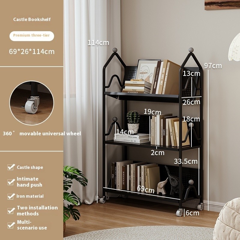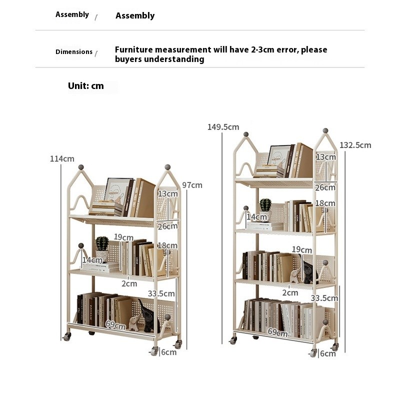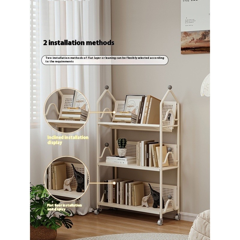 Cream Style Bookshelf Floor Standing Book Shelf Movable Book Cabinet Children's Bookshelf Cabinet