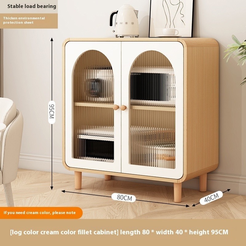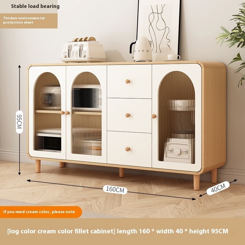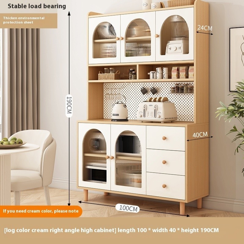 Cream Style Kitchen Cabinet Dust-proof Locker Cupboard Cutlery Storage Cabinet Integrated with Wall Sideboard