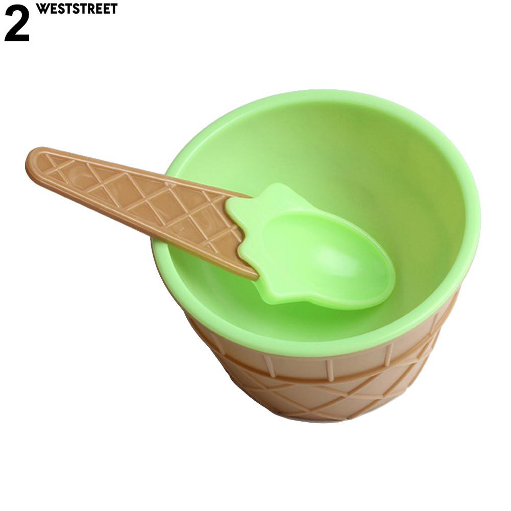 Creative Ice Cream Bowl + Spoon Kids Children Summer Party Dessert Cup Gift