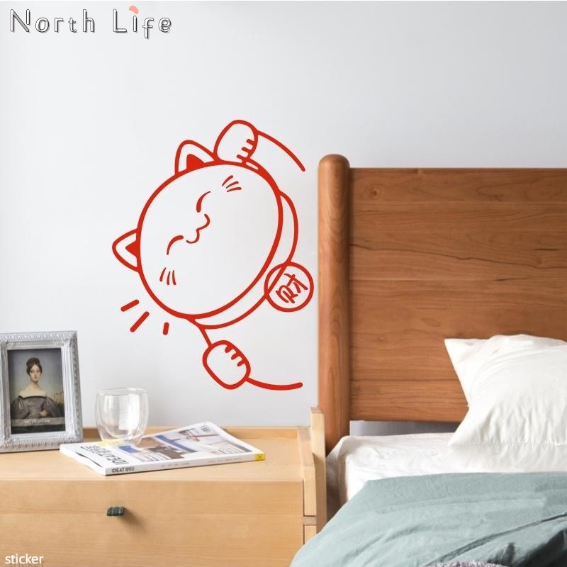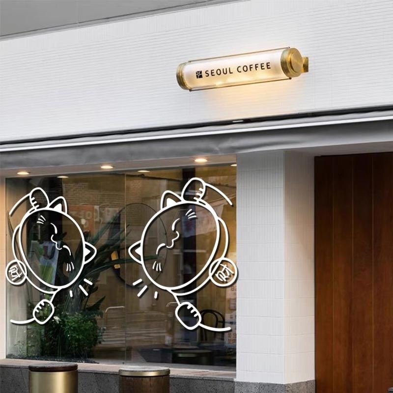 Creative New Year Cartoon Red Cat Glass Door Stickers Clothing Store Push and Pull Glass Door Anti-collision Stickers Catering Clothing Store Decorative Wall Stickers
