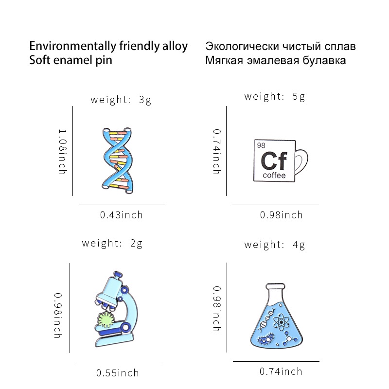 Creative Science Enamel Pin Microscope Pin DNA Pin Biological Experiment Pin Cartoon Badge Brooch Lapel Pin Gift for Science Lover